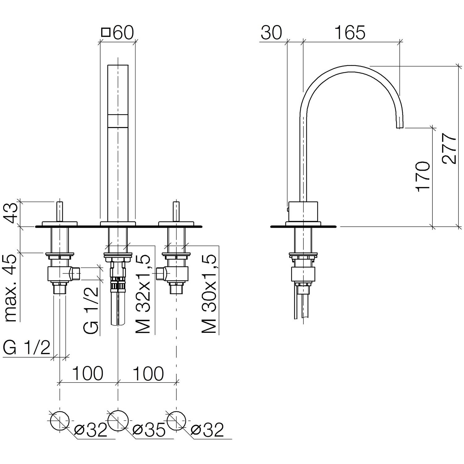 Dornbracht MEM washbasin three-hole mixer with single rosettes projection 16.5 cm