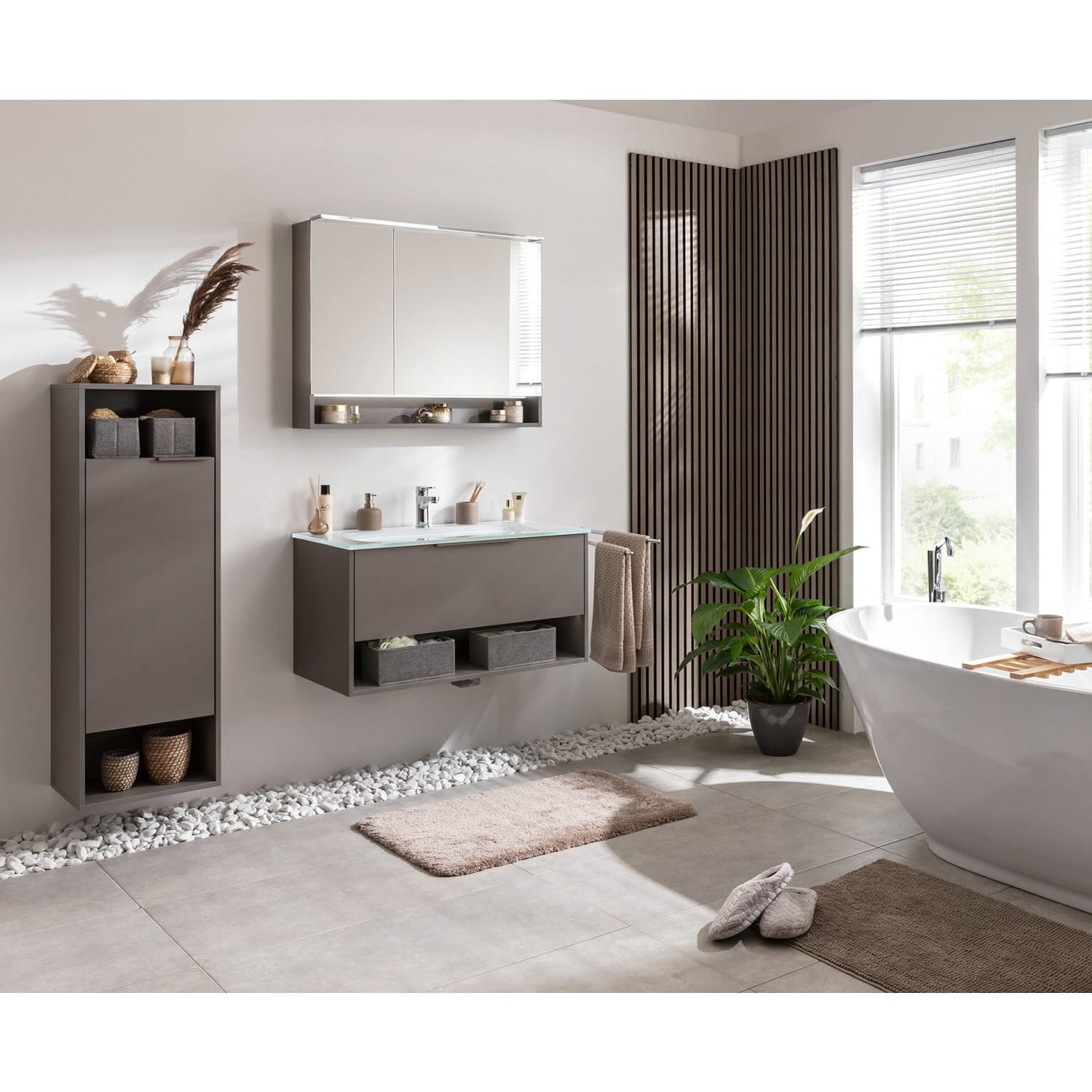 - 2 offene Fächer mit Rückwand in cubanit grau