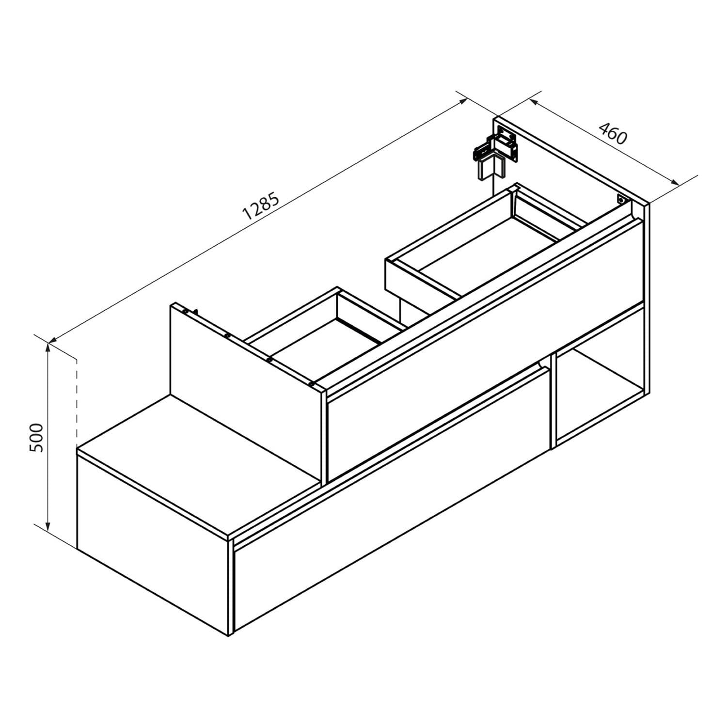 - 1 offenes Fach für zusätzlichen Stauraum