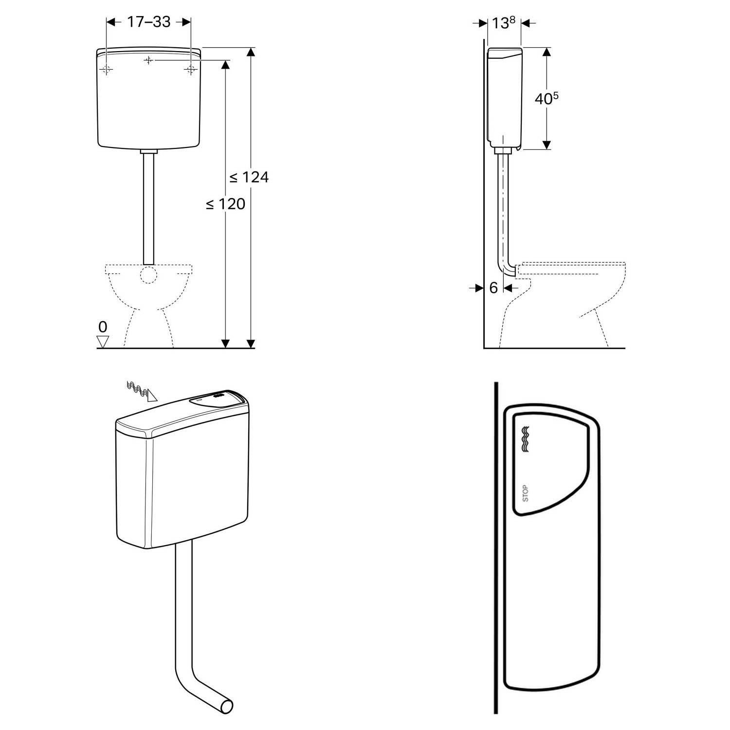 Geberit AP-Spülkasten AP140 halbhochhängend mit Spül-Stopp-Spülung