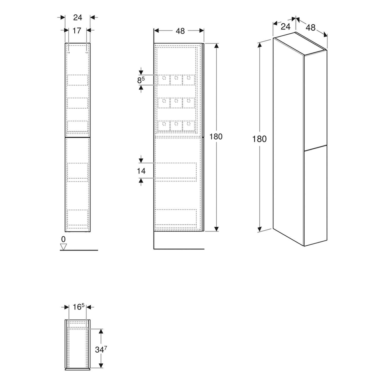 Geberit Hochschrank mit zwei Auszügen 24 x 48 x 180 cm