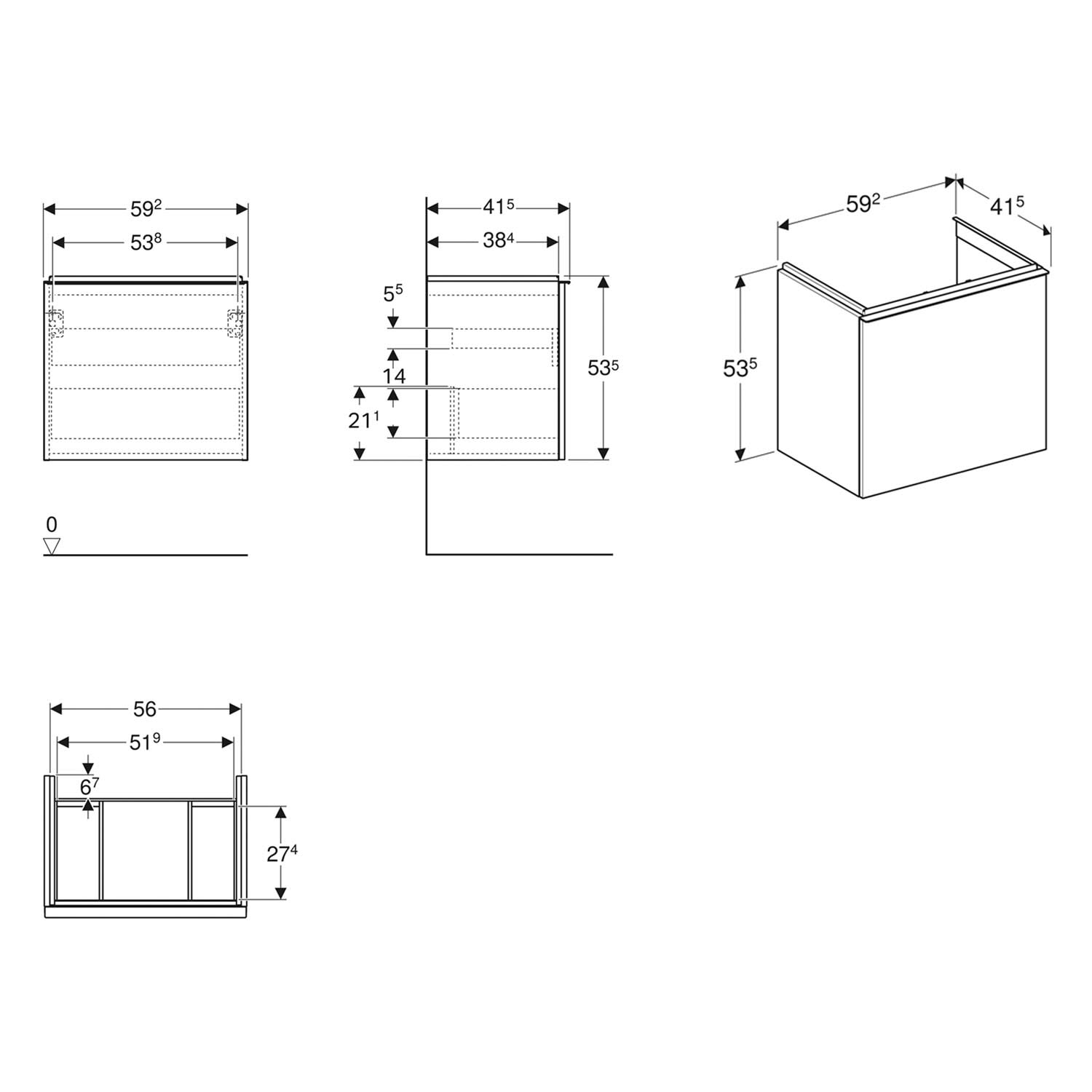 Geberit Acanto Unterschrank für Waschtisch 59,2 x 41,5 cm, verkürzte Ausladung