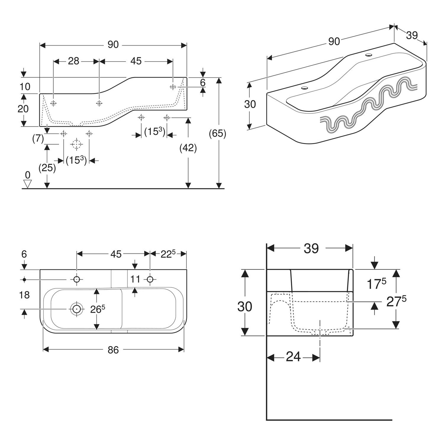 - zur Montage an Geberit Duofix Elementen für Waschtische oder Geberit GIS Set Bambini Spiel- und Waschlandschaften