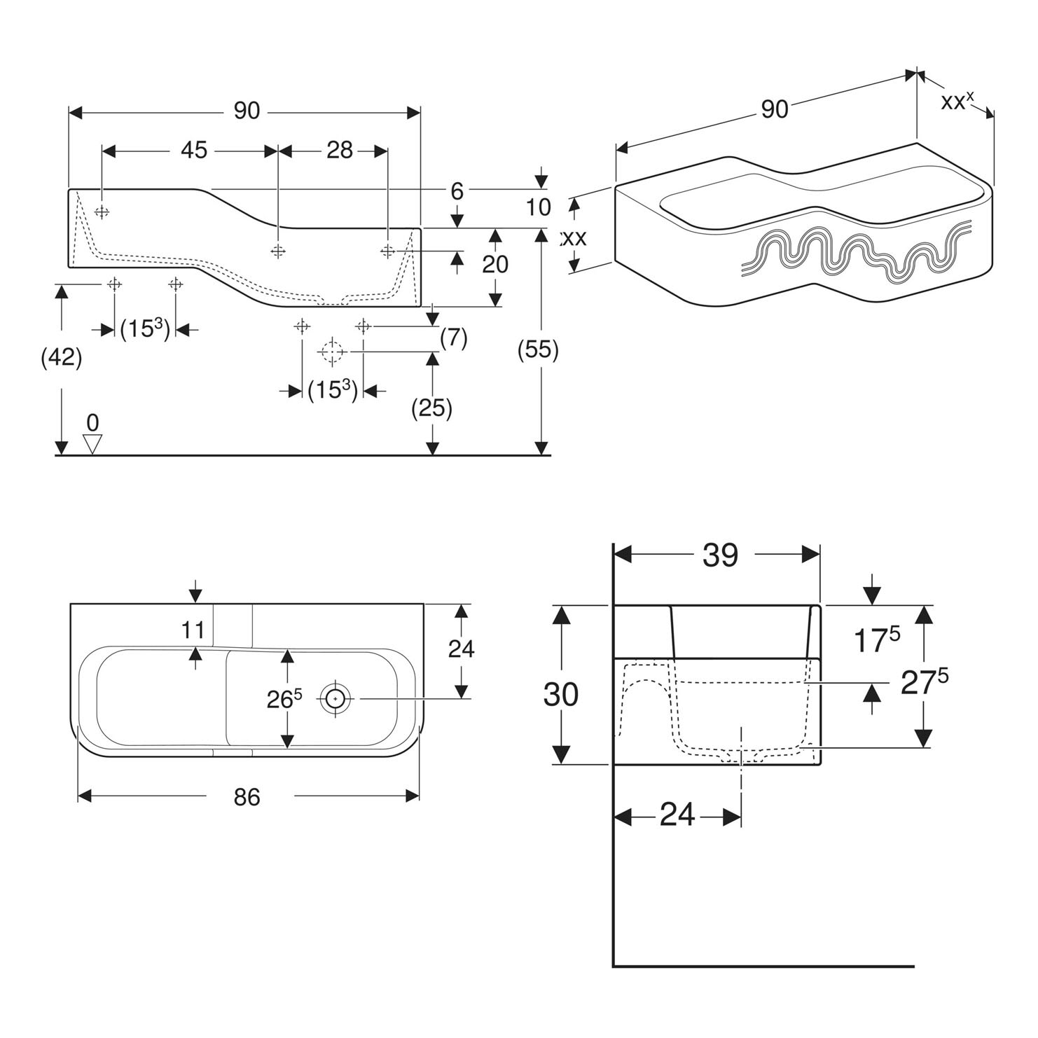 Geberit Bambini Spiel- und Waschlandschaft, 2 Waschplätze, tieferes Becken rechts