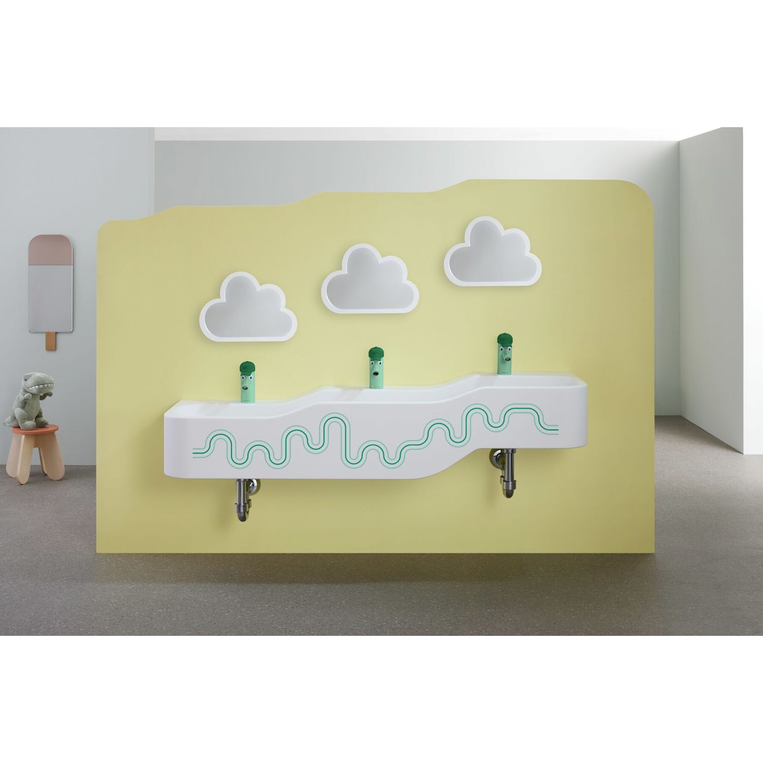 Geberit Bambini Spiel- und Waschlandschaft, 3 Waschplätze, tieferes Becken links