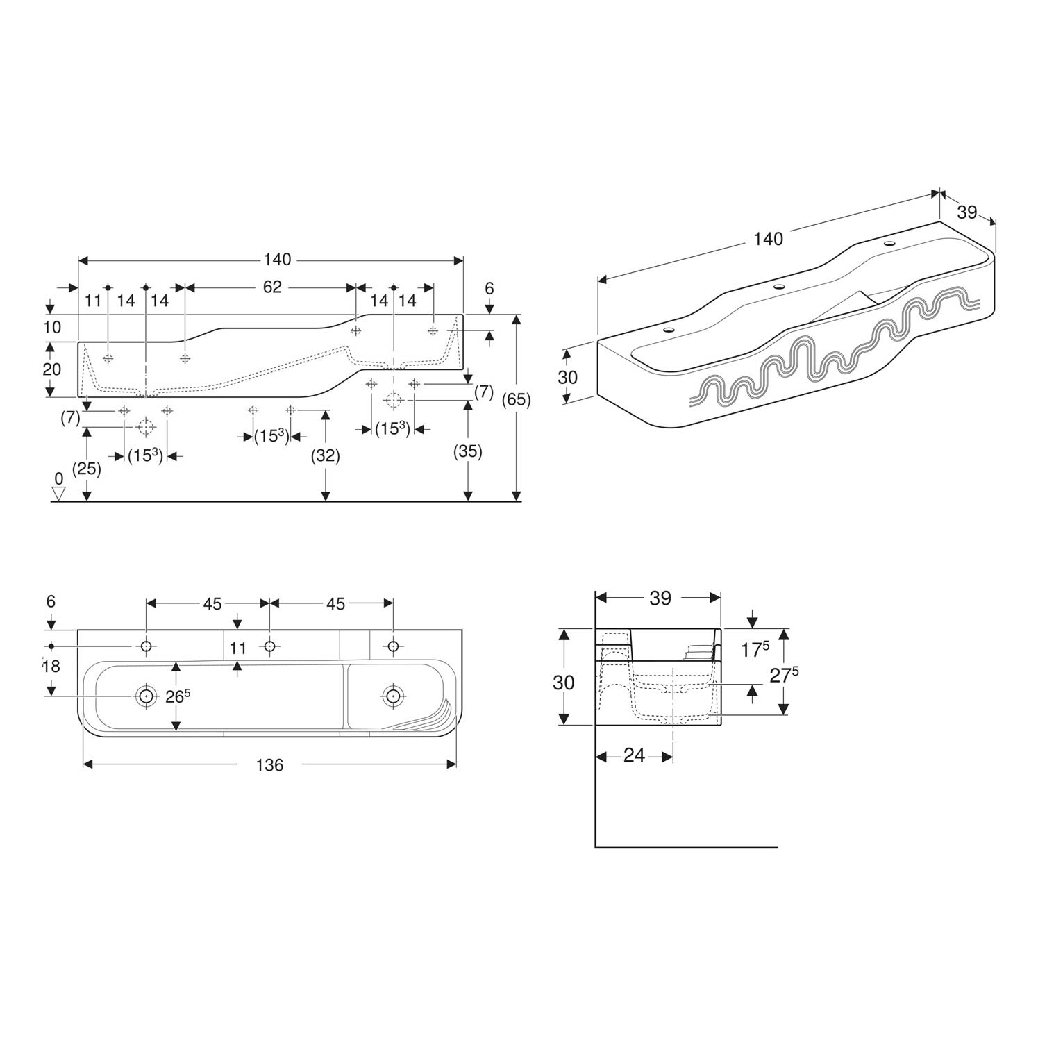 - Lieferumfang: Waschrinne
