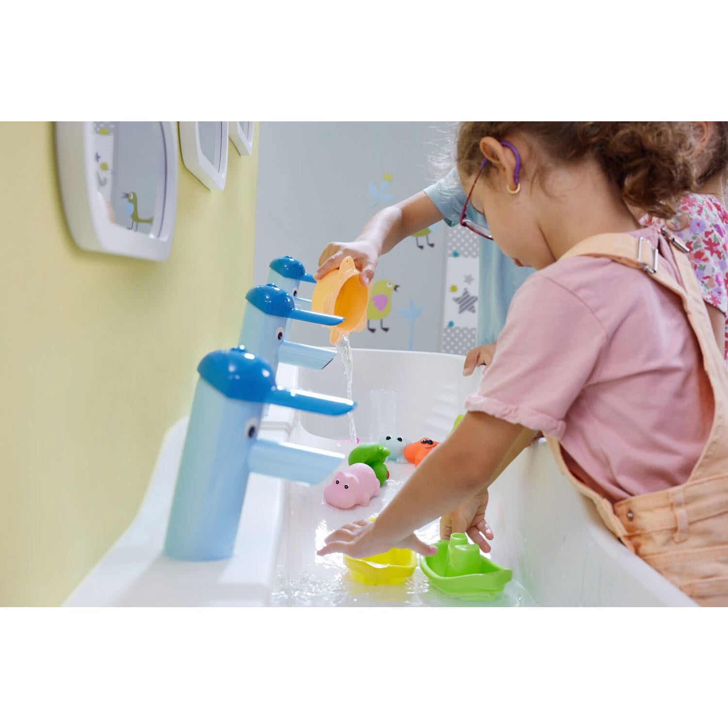- integrierte Staufunktion mit Rutsche und haptischer Bereich für Wasserspiele und multisensorische Erfahrung