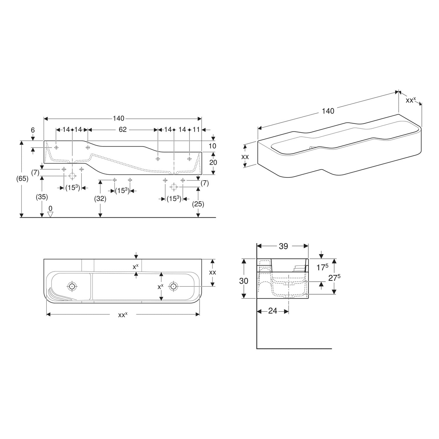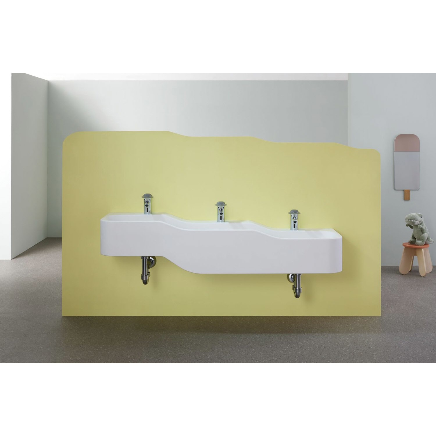 Geberit Bambini Spiel- und Waschlandschaft, 3 Waschplätze, tieferes Becken rechts
