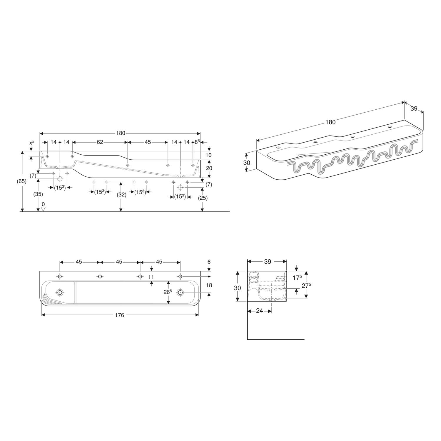 Geberit Bambini Spiel- und Waschlandschaft, 4 Waschplätze, tieferes Becken rechts