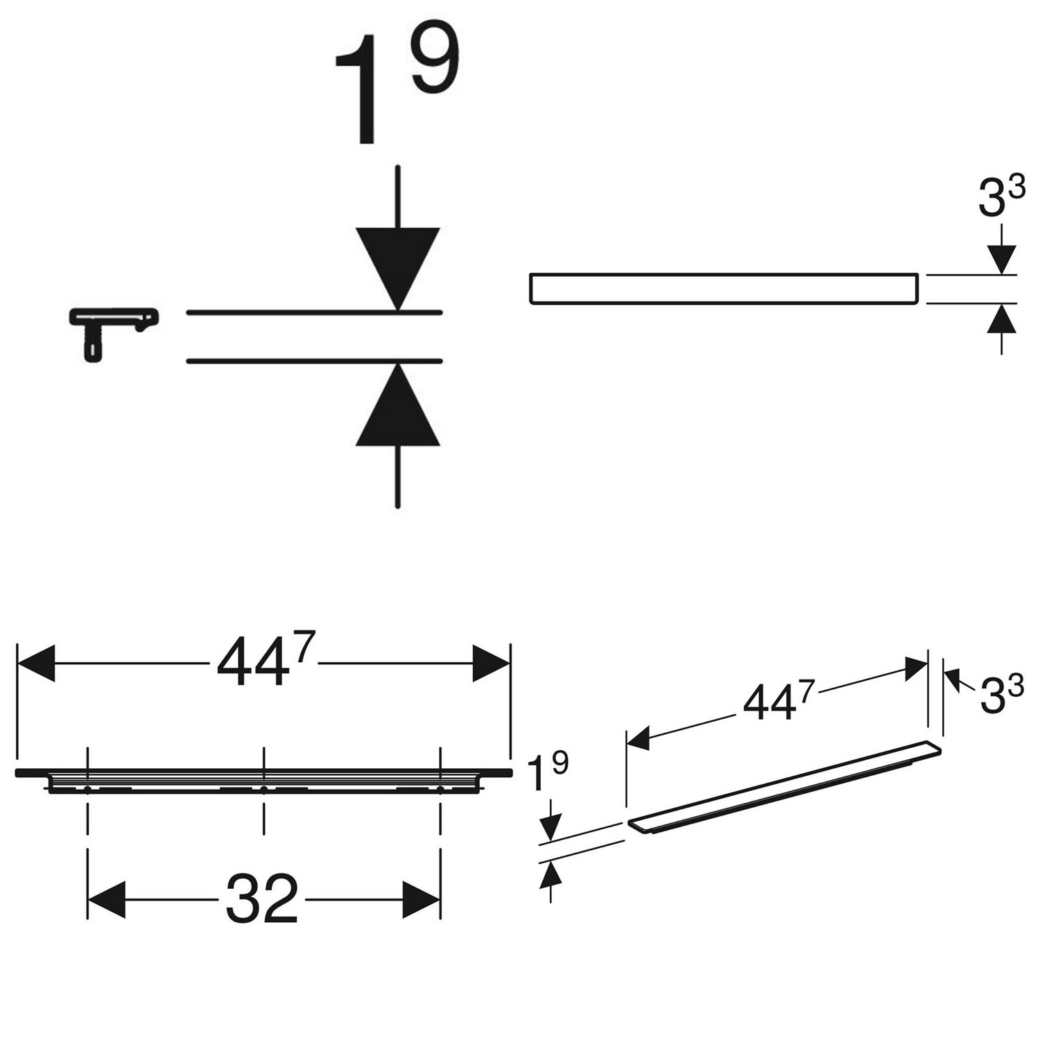 B: 44,7 T: 3,3 H: 1,9 cm