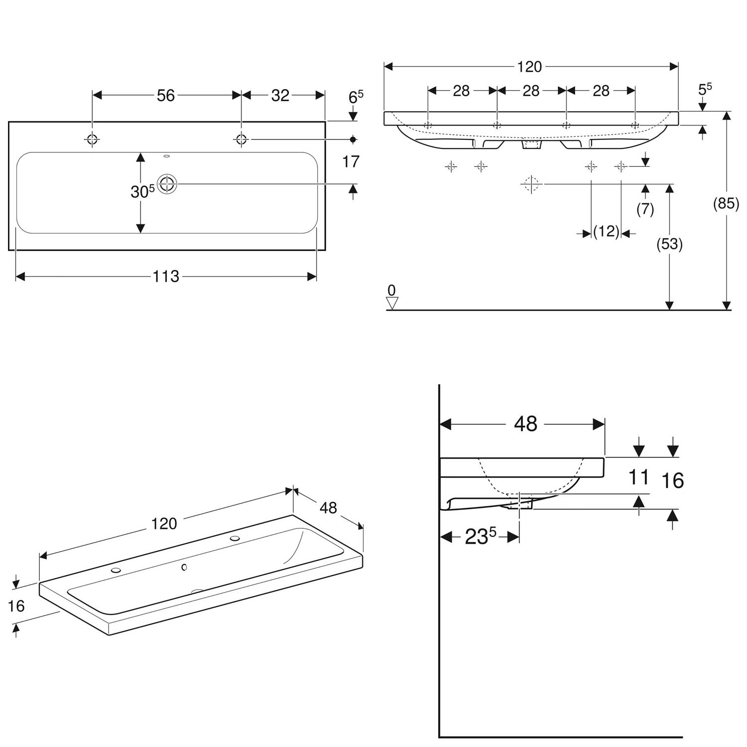 Geberit iCon Light Waschtisch 120 cm, mit 2 Hahnlöchern, mit Überlauf