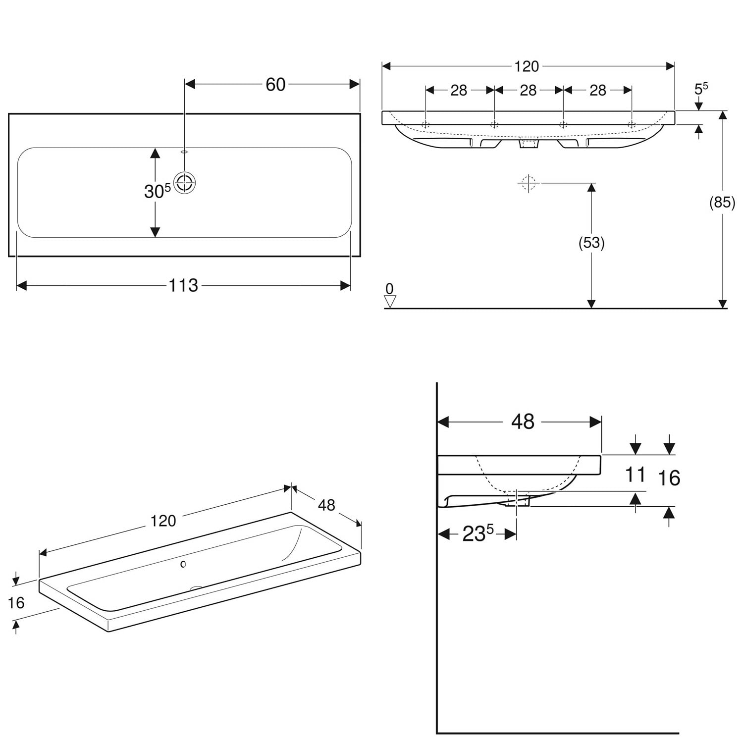 Geberit iCon Light Waschtisch 120 cm, ohne Hahnloch, mit Überlauf
