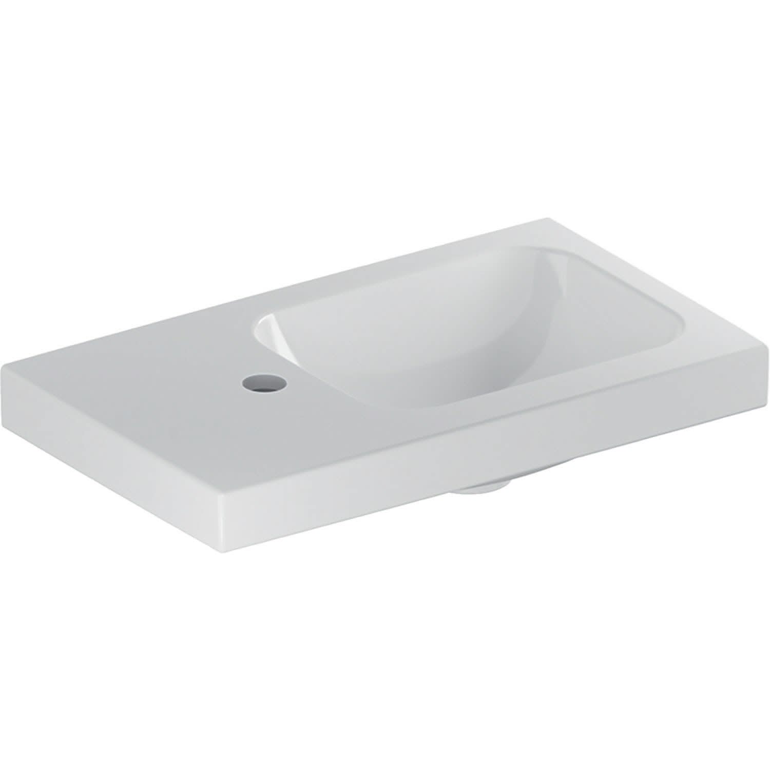 Geberit iCon Light Handwaschbecken 53 cm mit Ablagefläche, mit 1 Hahnloch links, ohne Überlauf