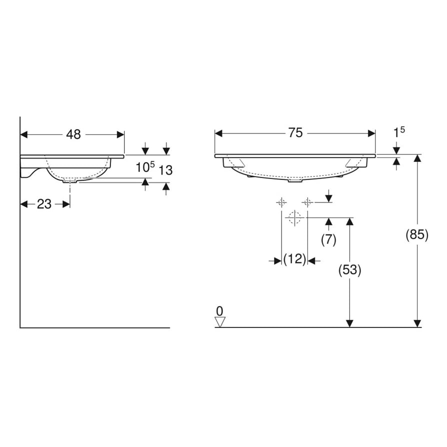 Geberit iCon Möbelwaschtisch 75 cm mit Hahnloch mittig, ohne Überlauf