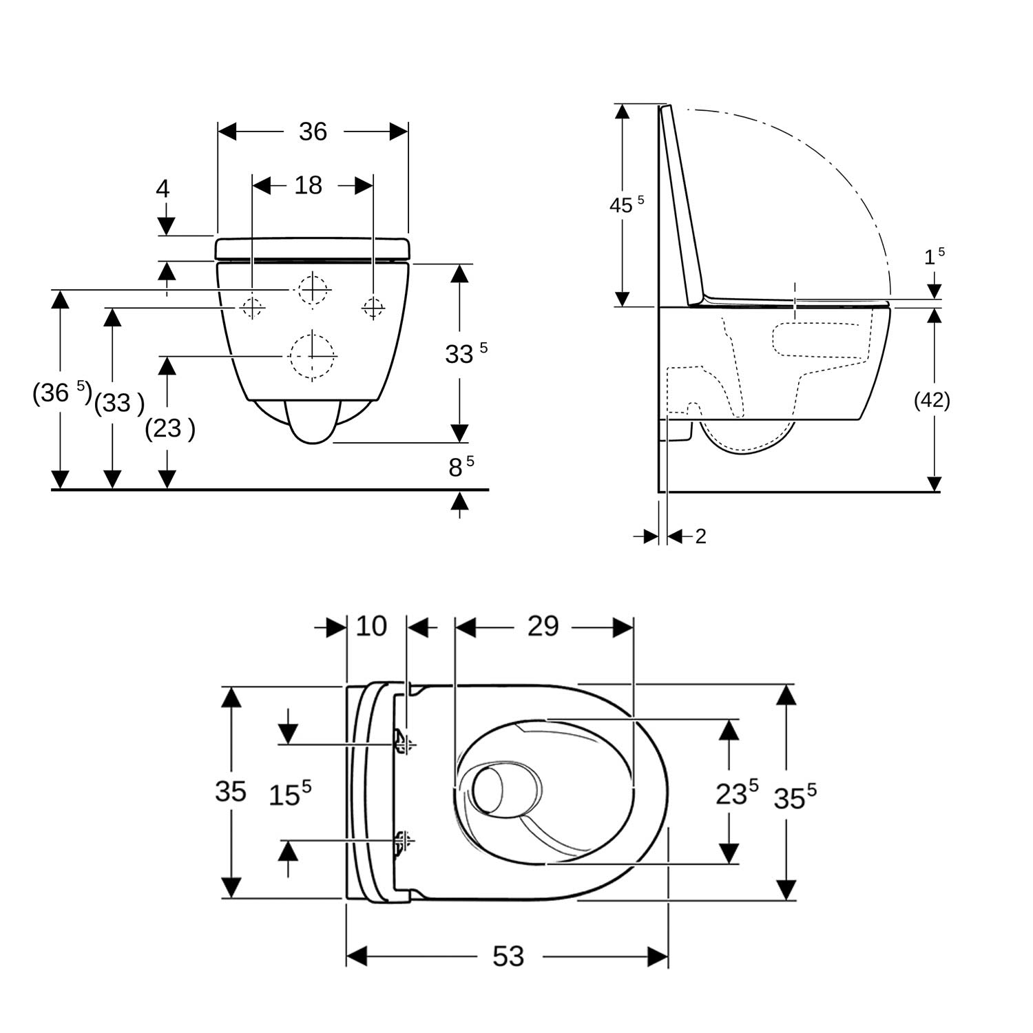 - Lieferumfang: WC-Keramik, WC-Sitz, Befestigungsmaterial