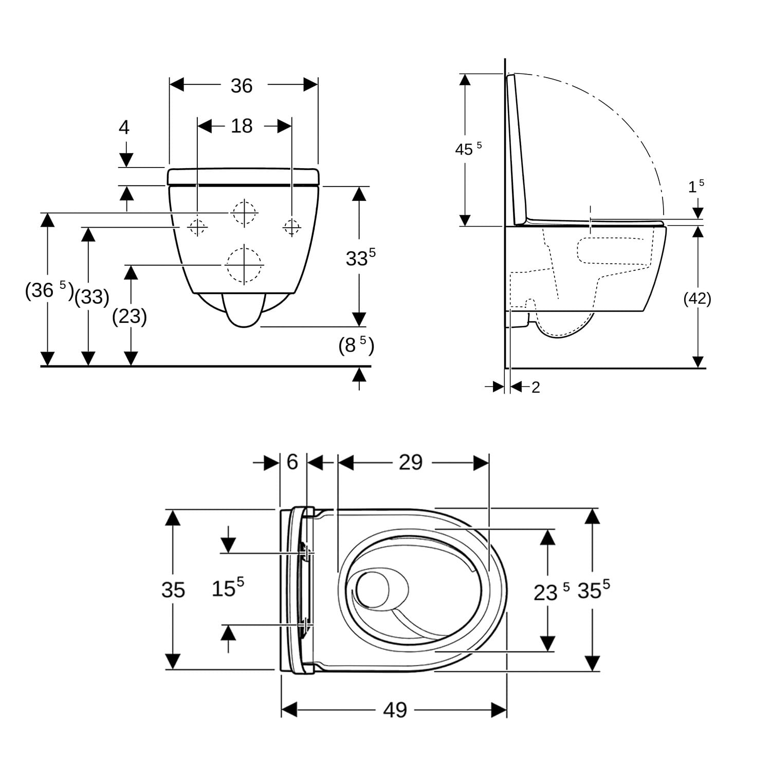 - WC-Sitz aus Duroplast, Deckel überlappend, mit EasyMount-Scharnieren