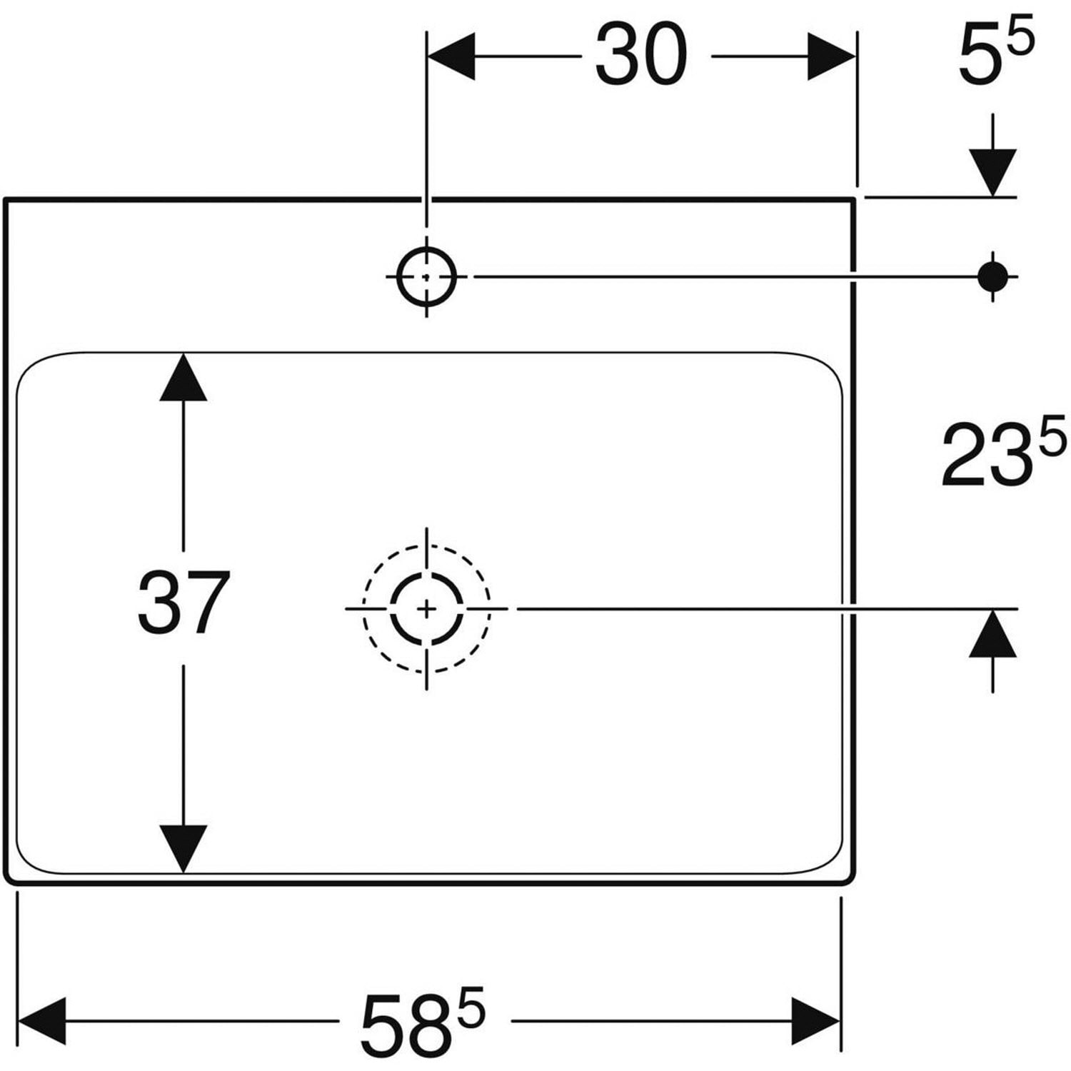 Geberit ONE Waschtisch 60 cm, Abgang vertikal, 1 Hahnloch, ohne Überlauf