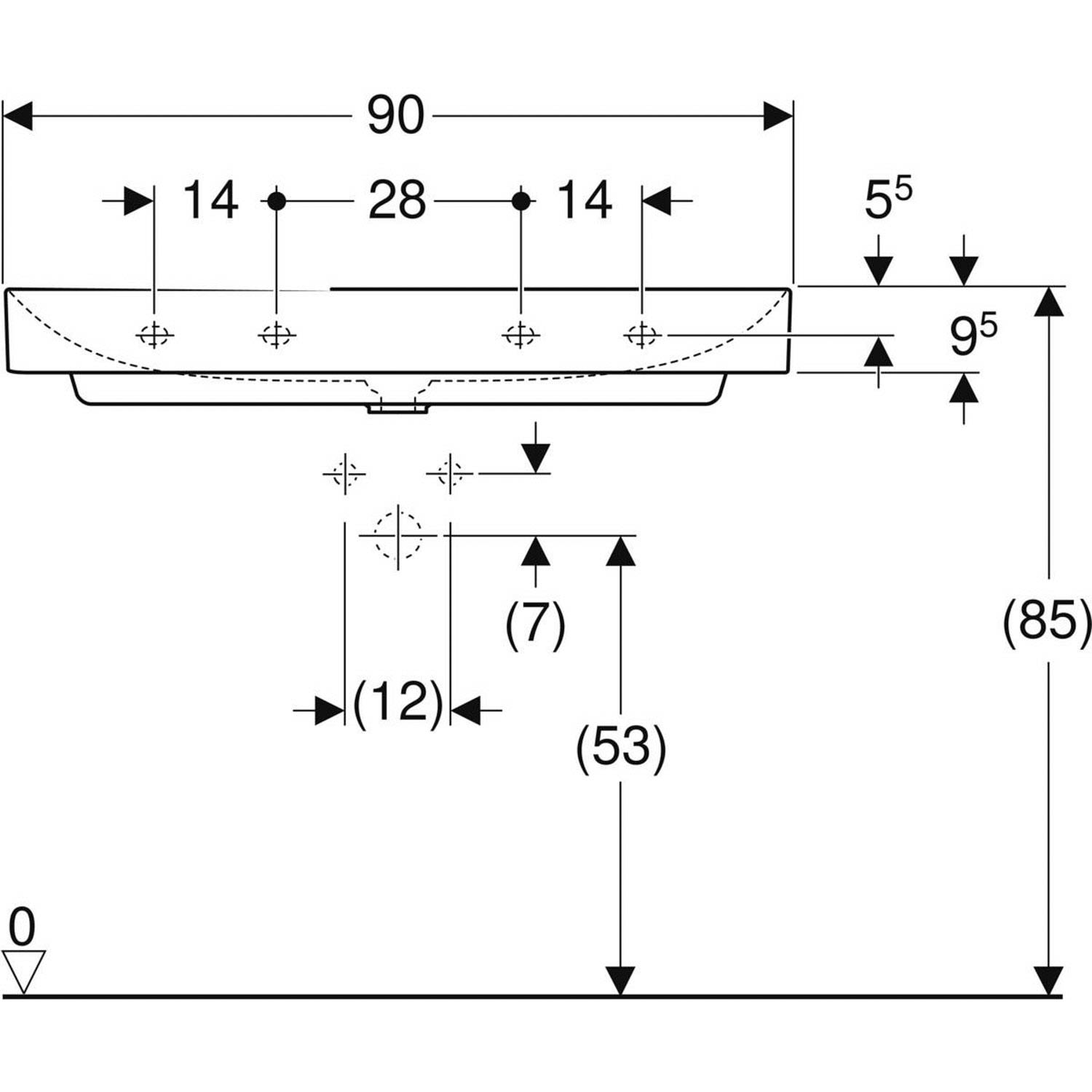 Geberit ONE Waschtisch 90 cm, Abgang vertikal, ohne Hahnloch, ohne Überlauf