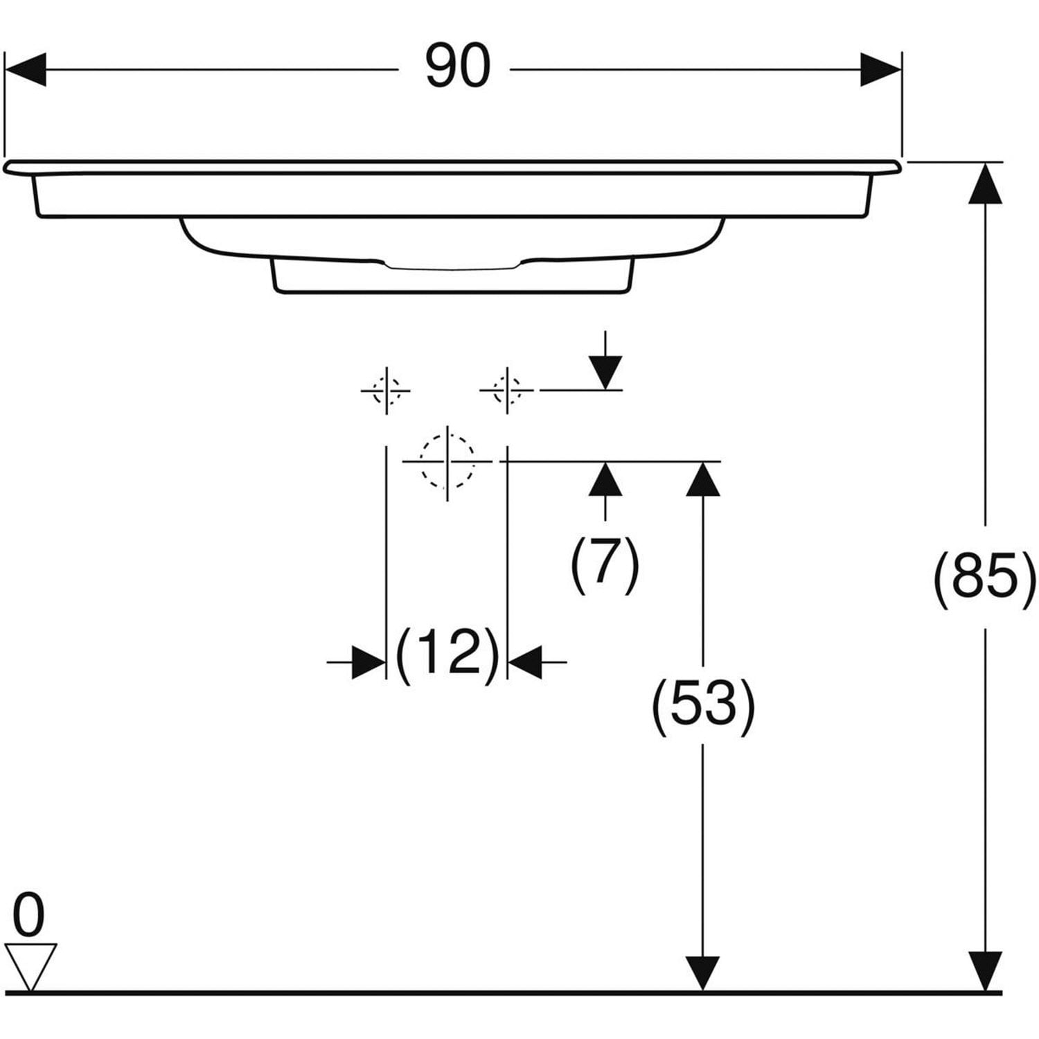 Geberit ONE Möbelwaschtisch 90 cm, Abgang horizontal, 1 Hahnloch, ohne Überlauf