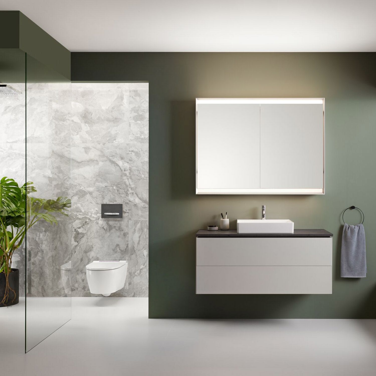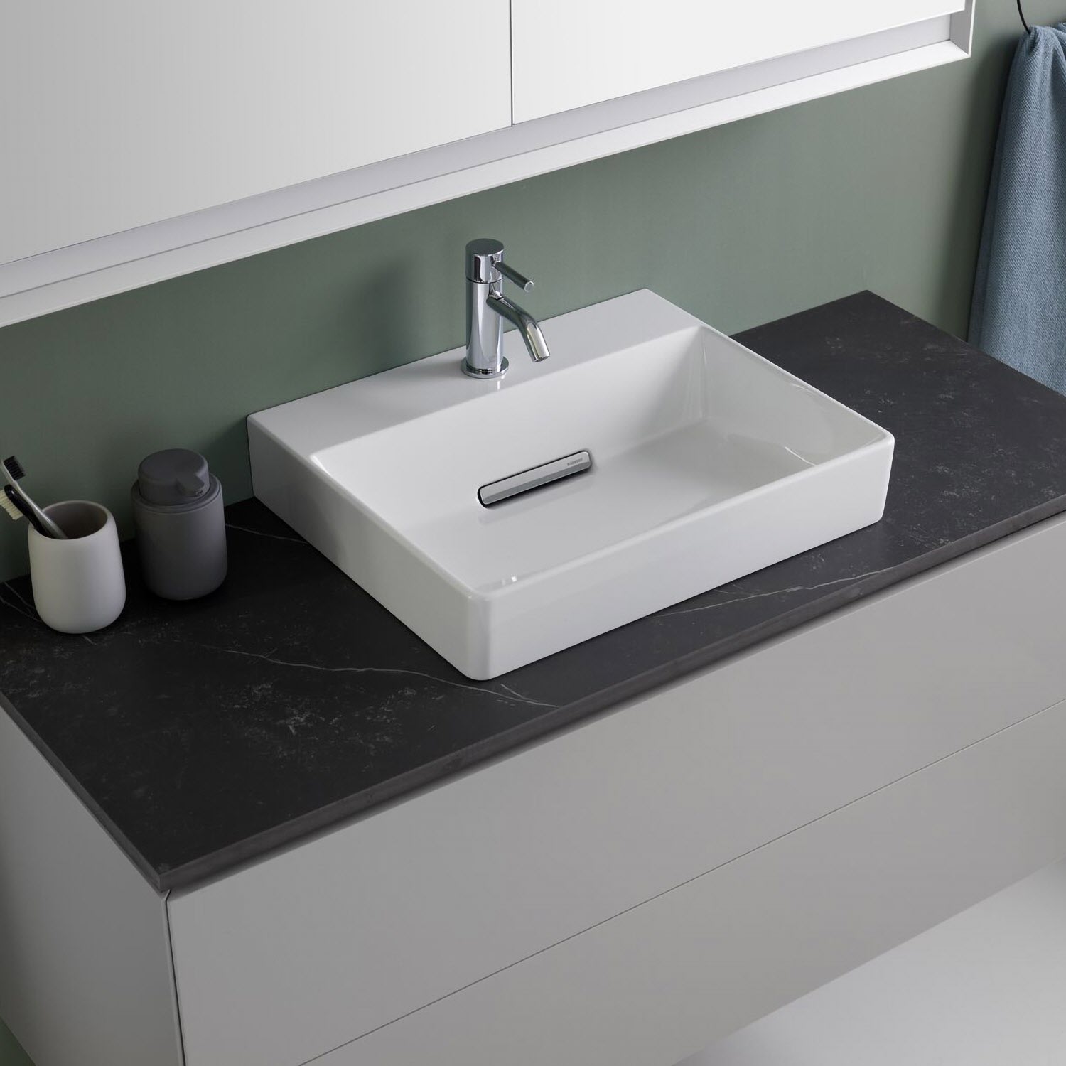 Geberit ONE Aufsatzwaschtisch, 1 Hahnloch, ohne Überlauf, Abgang horizontal