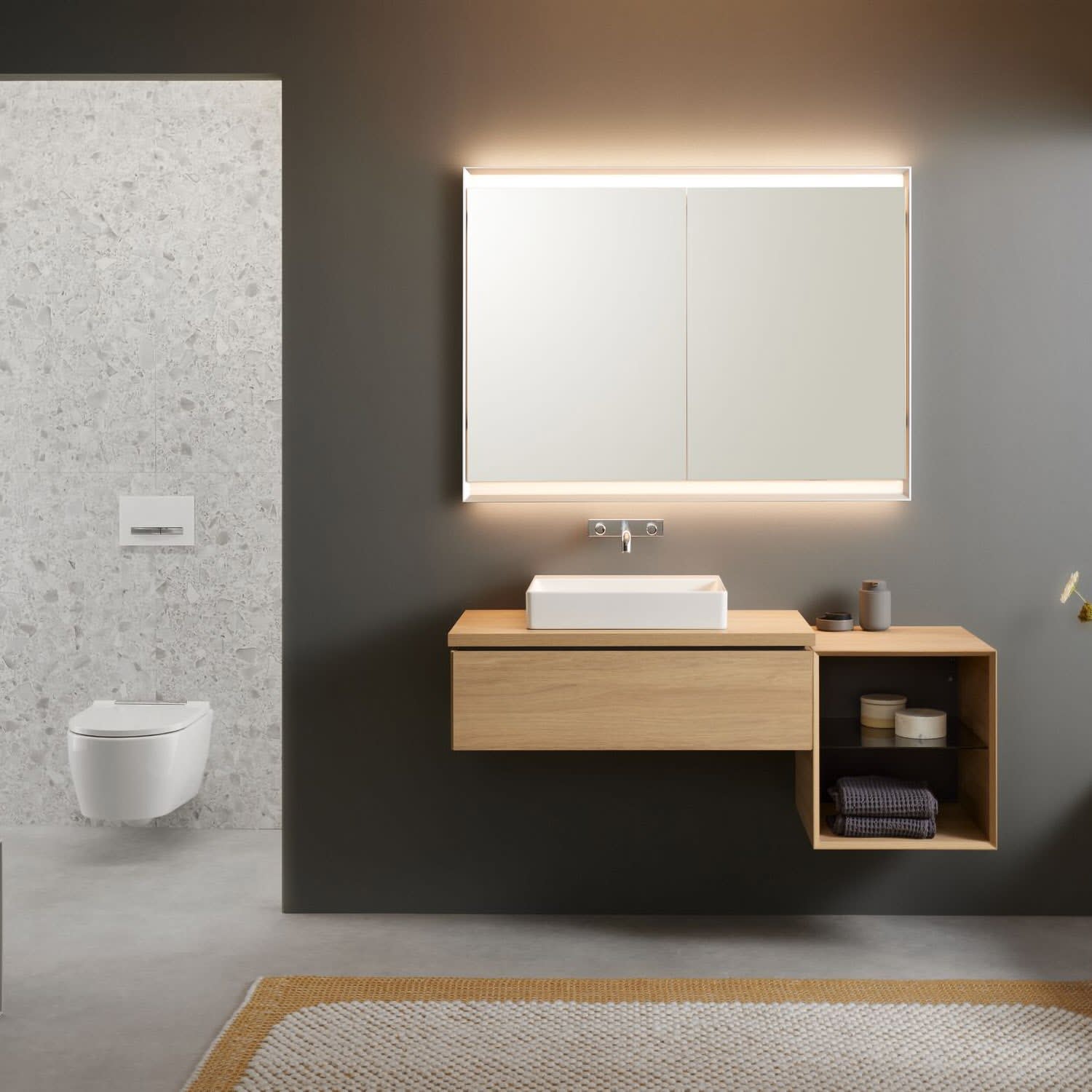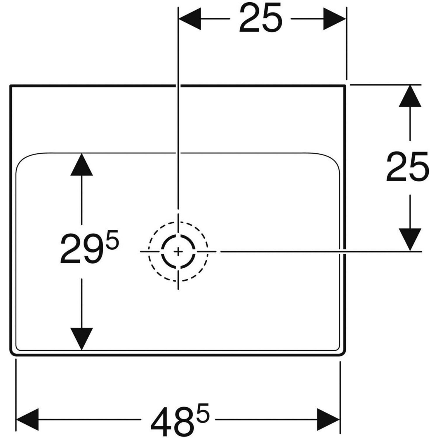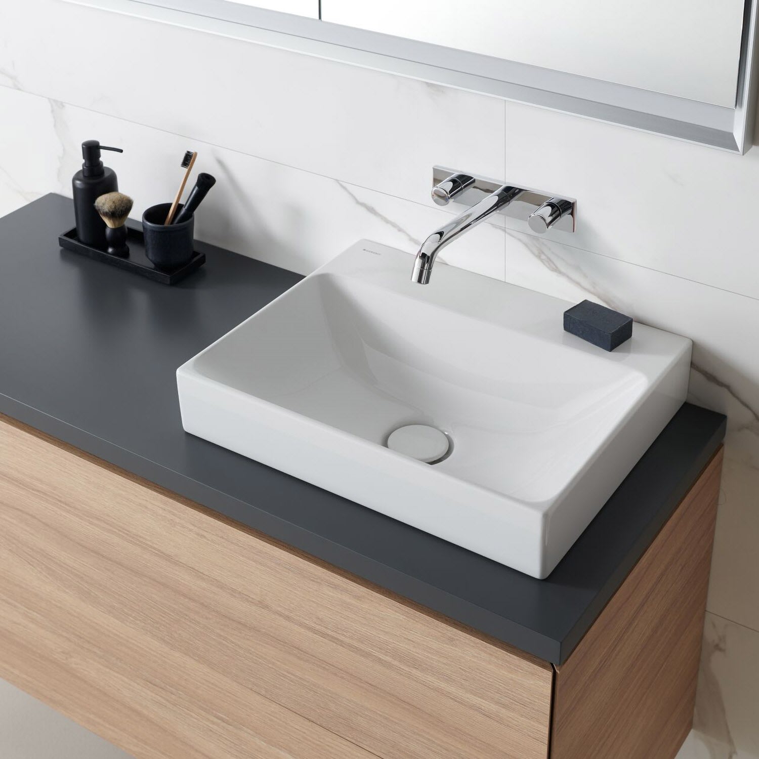 Geberit ONE Aufsatzwaschtisch, ohne Hahnloch, ohne Überlauf, Abgang vertikal