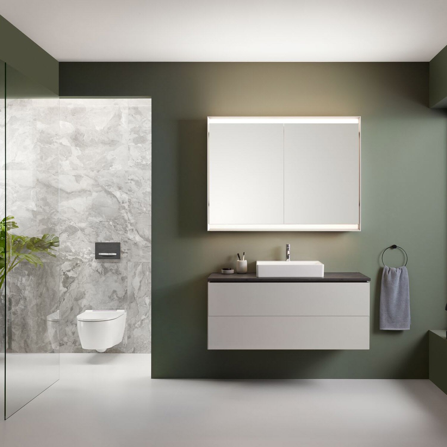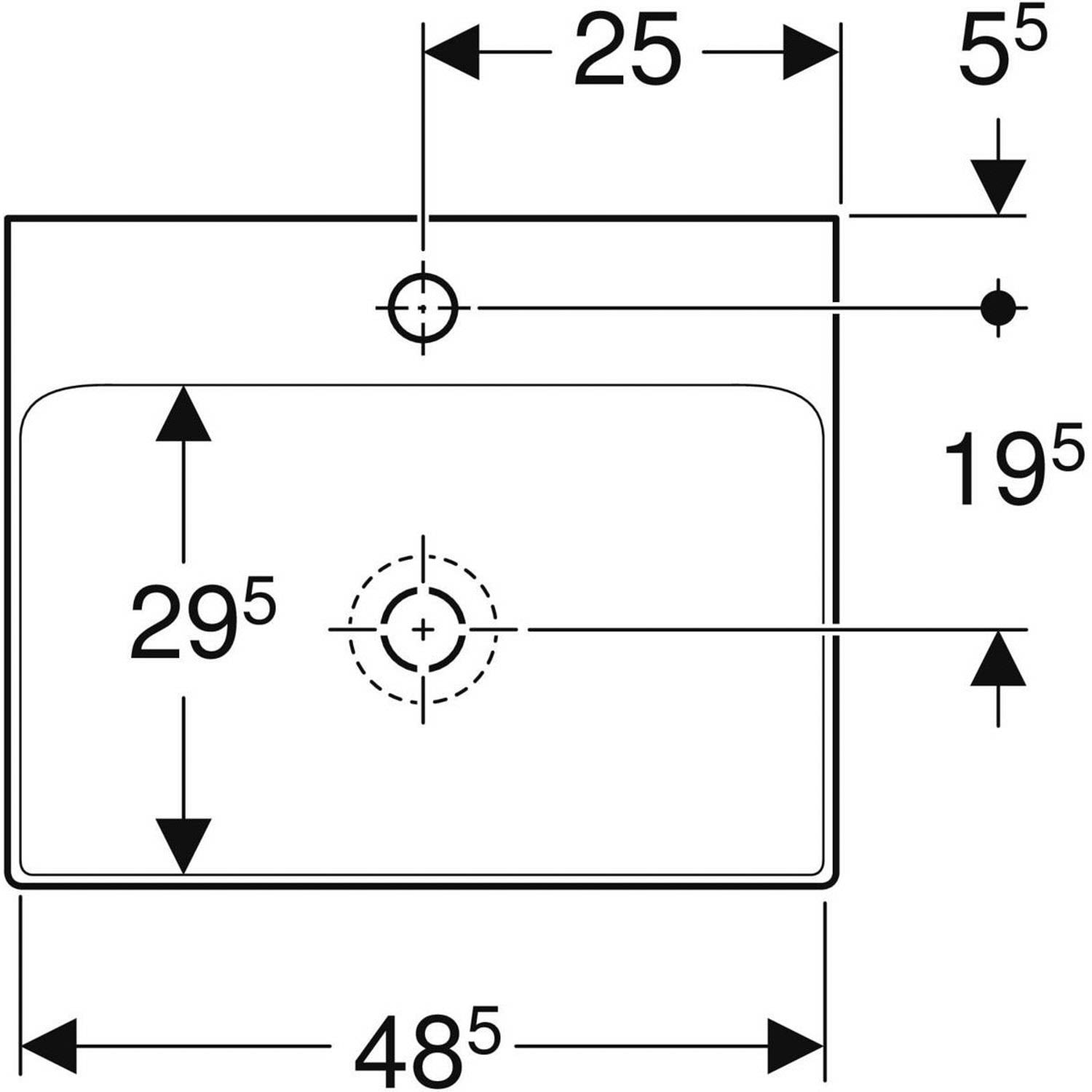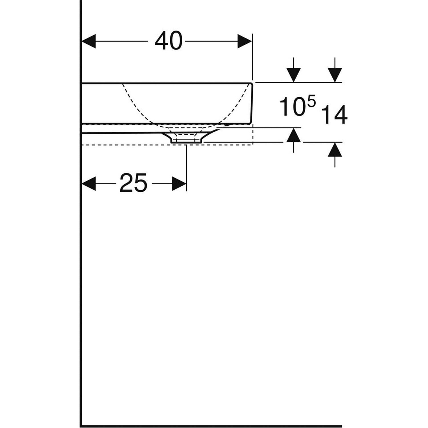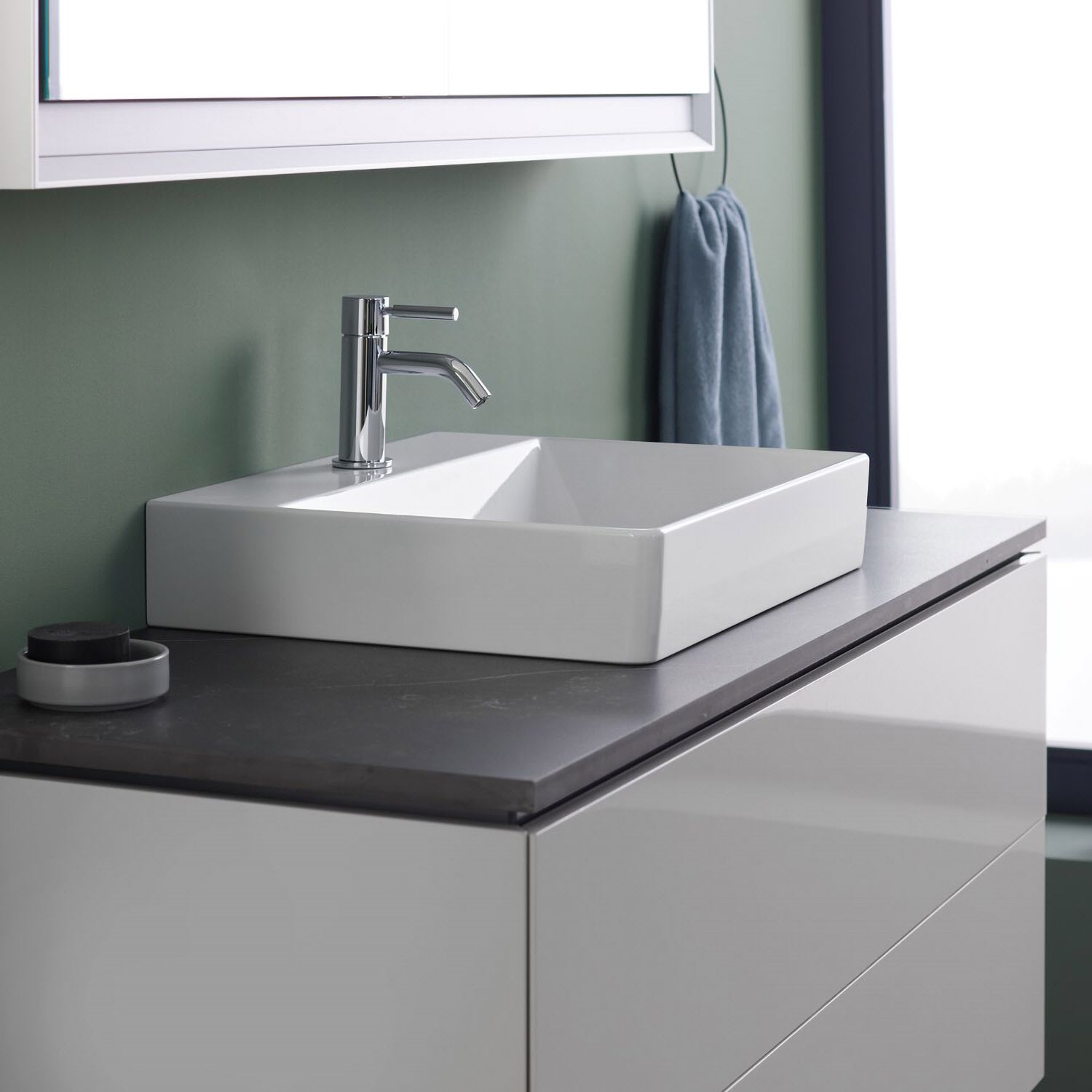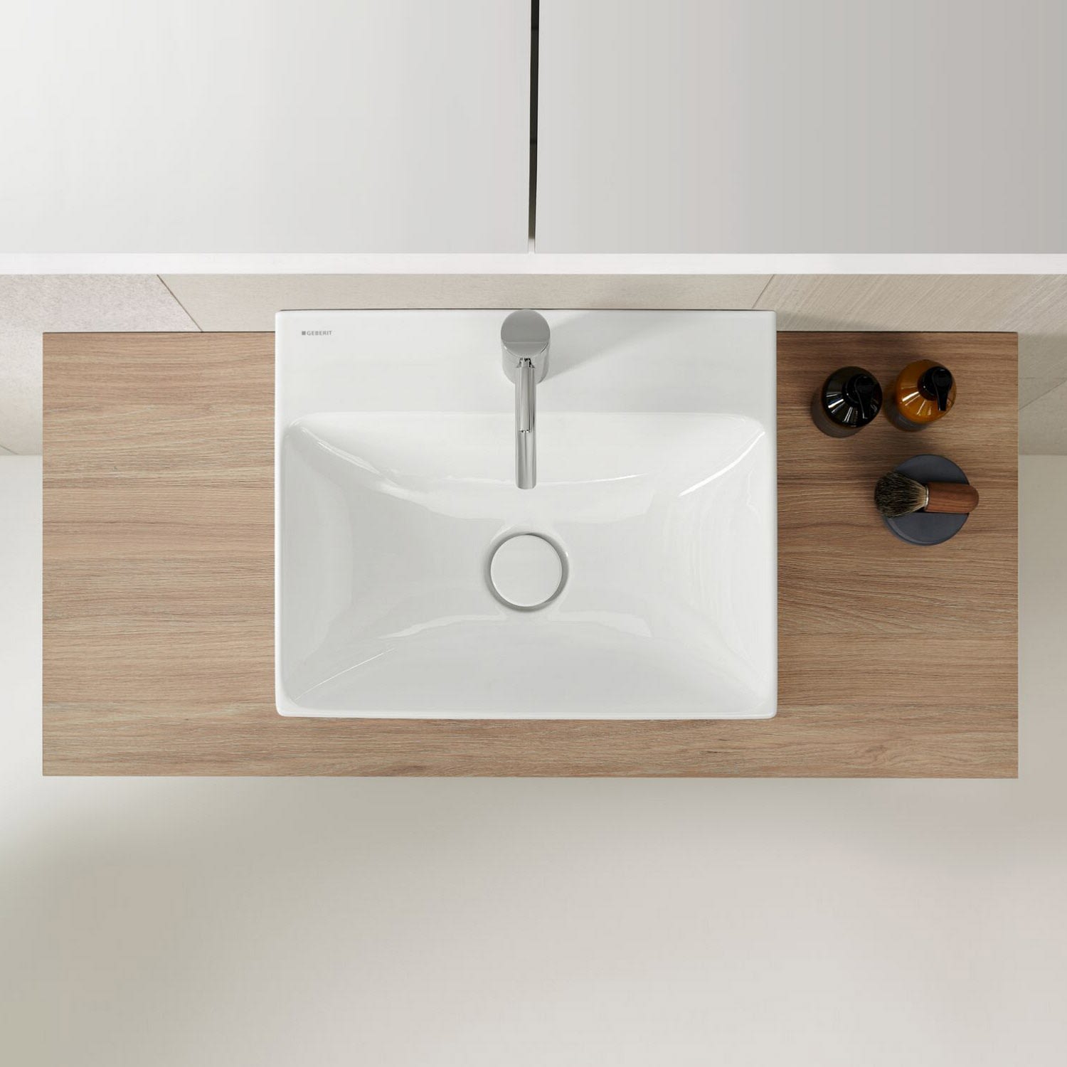 Geberit ONE Aufsatzwaschtisch, 1 Hahnloch, ohne Überlauf, Abgang vertikal