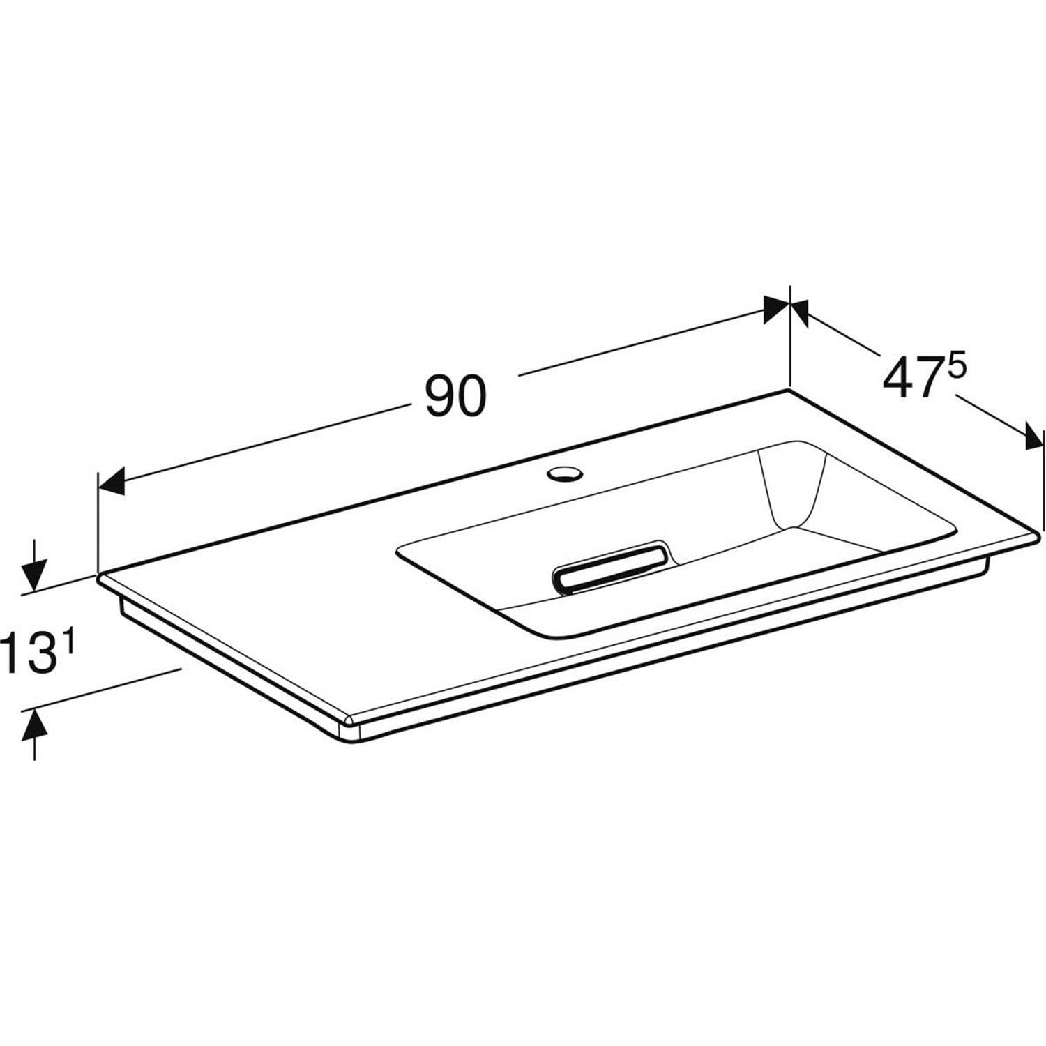 Geberit ONE Möbelwaschtisch 90 cm, Abgang horizontal, 1 Hahnloch, ohne Überlauf, Ablage links