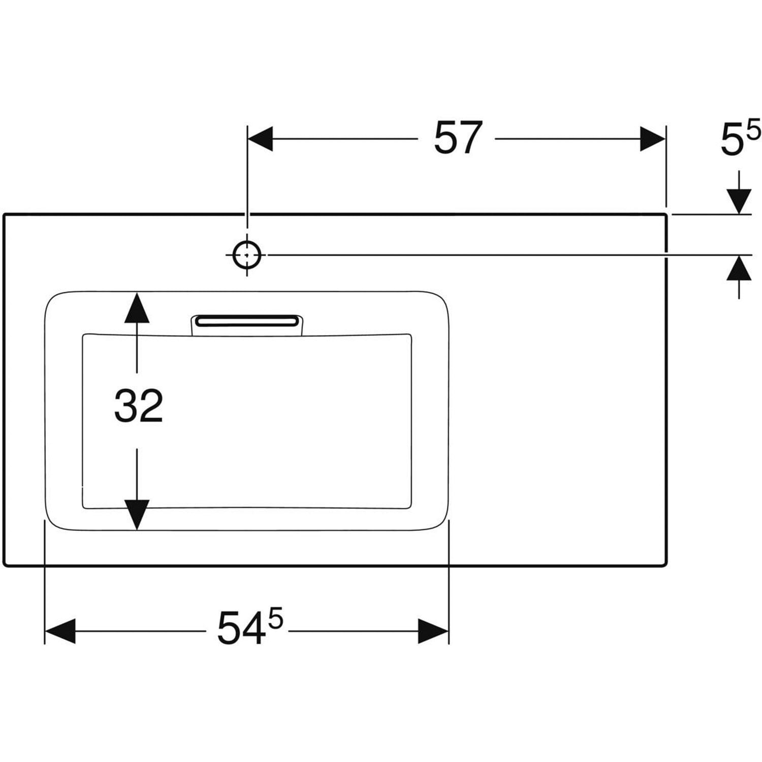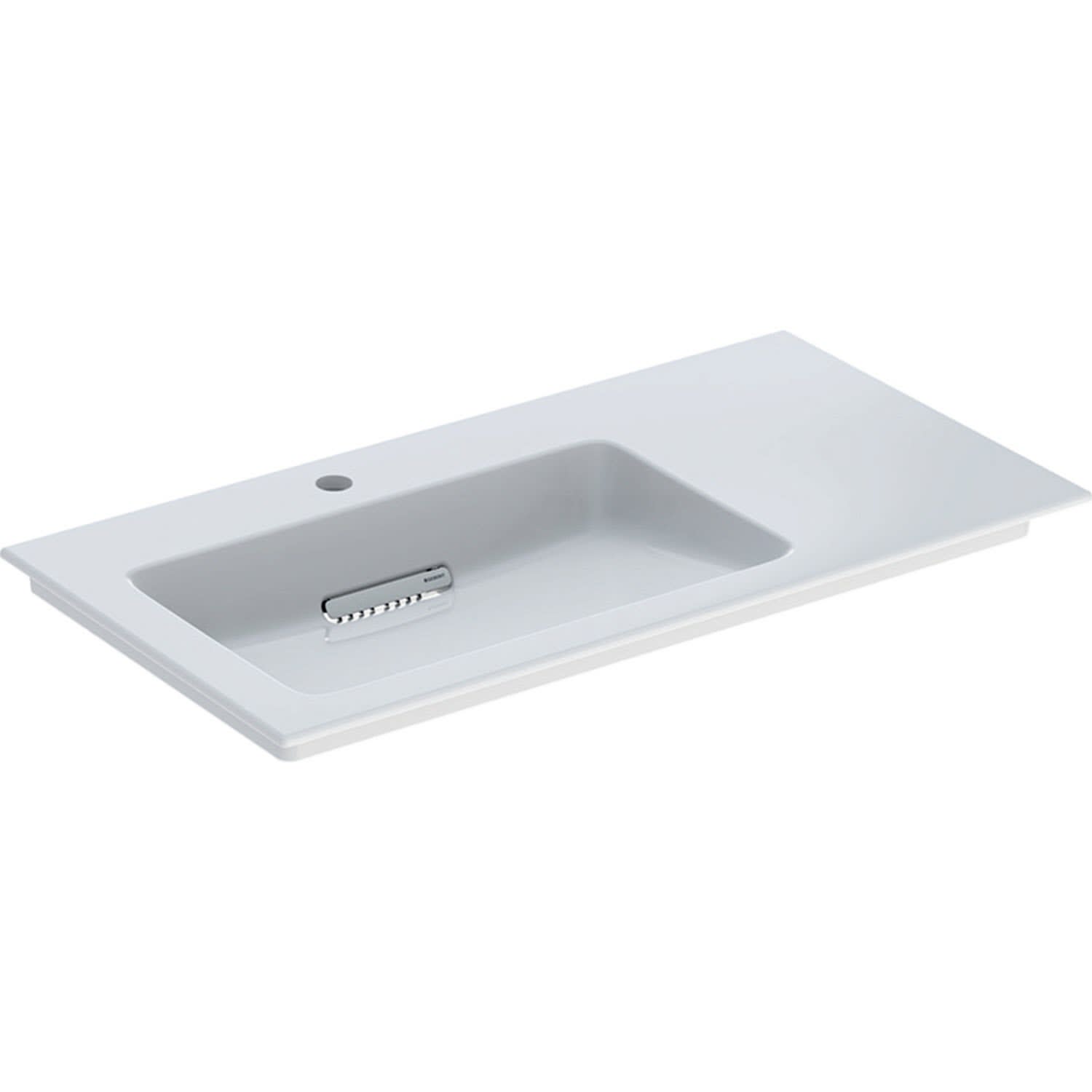 Geberit ONE Möbelwaschtisch 90 cm, Abgang horizontal, 1 Hahnloch, ohne Überlauf, Ablage rechts