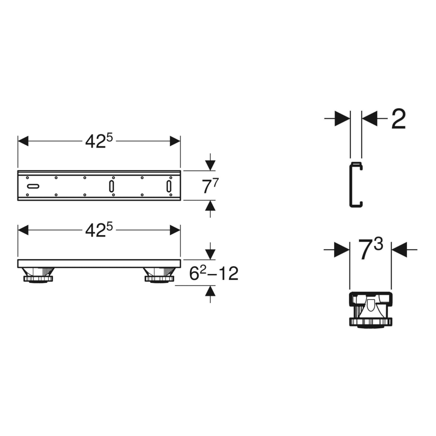 - zum Auflegen, Höheneinstellen und Befestigen von Duschwannen