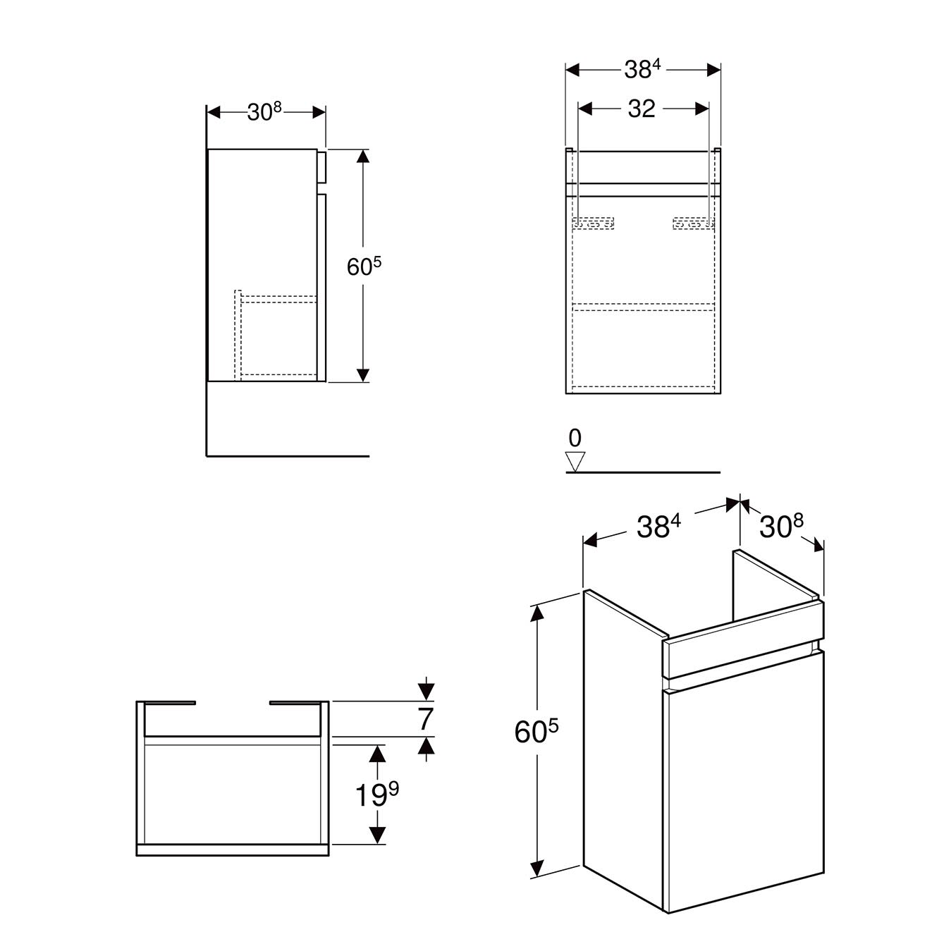B: 38,4 T: 30,8 H: 60,5 cm