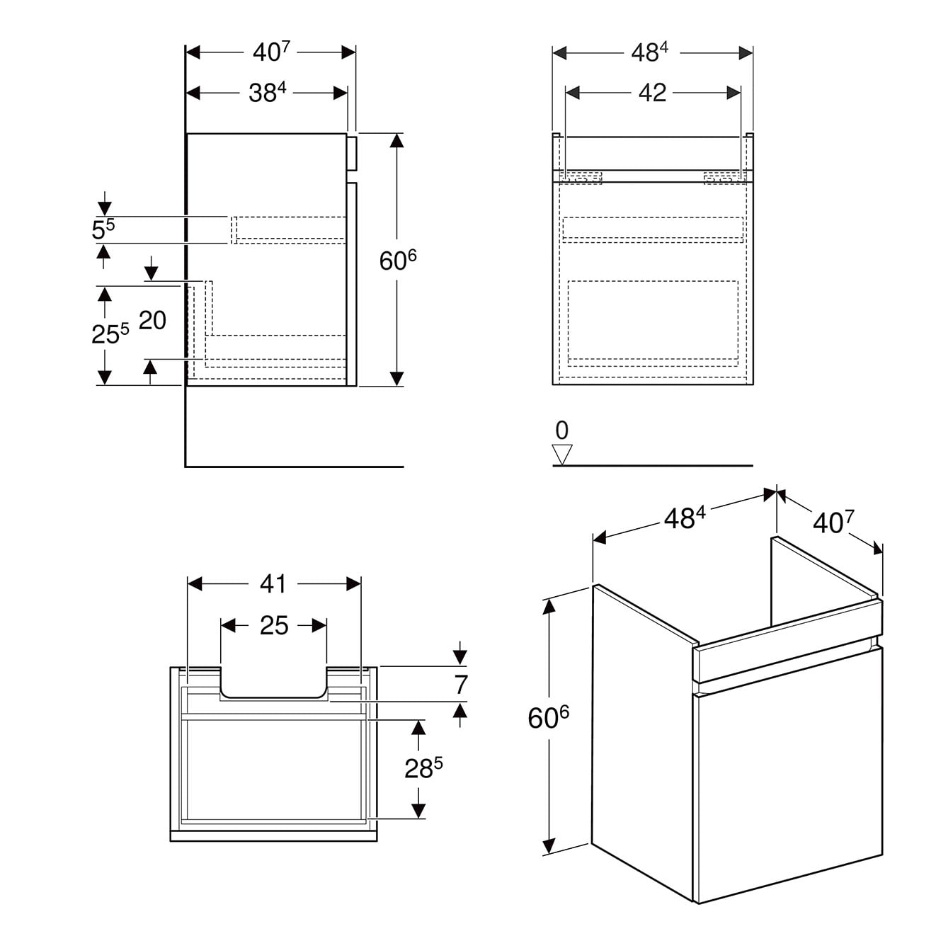 Geberit Renova Plan Unterschrank für Waschtisch 55 cm, mit 1 Schublade und 1 Innenschublade