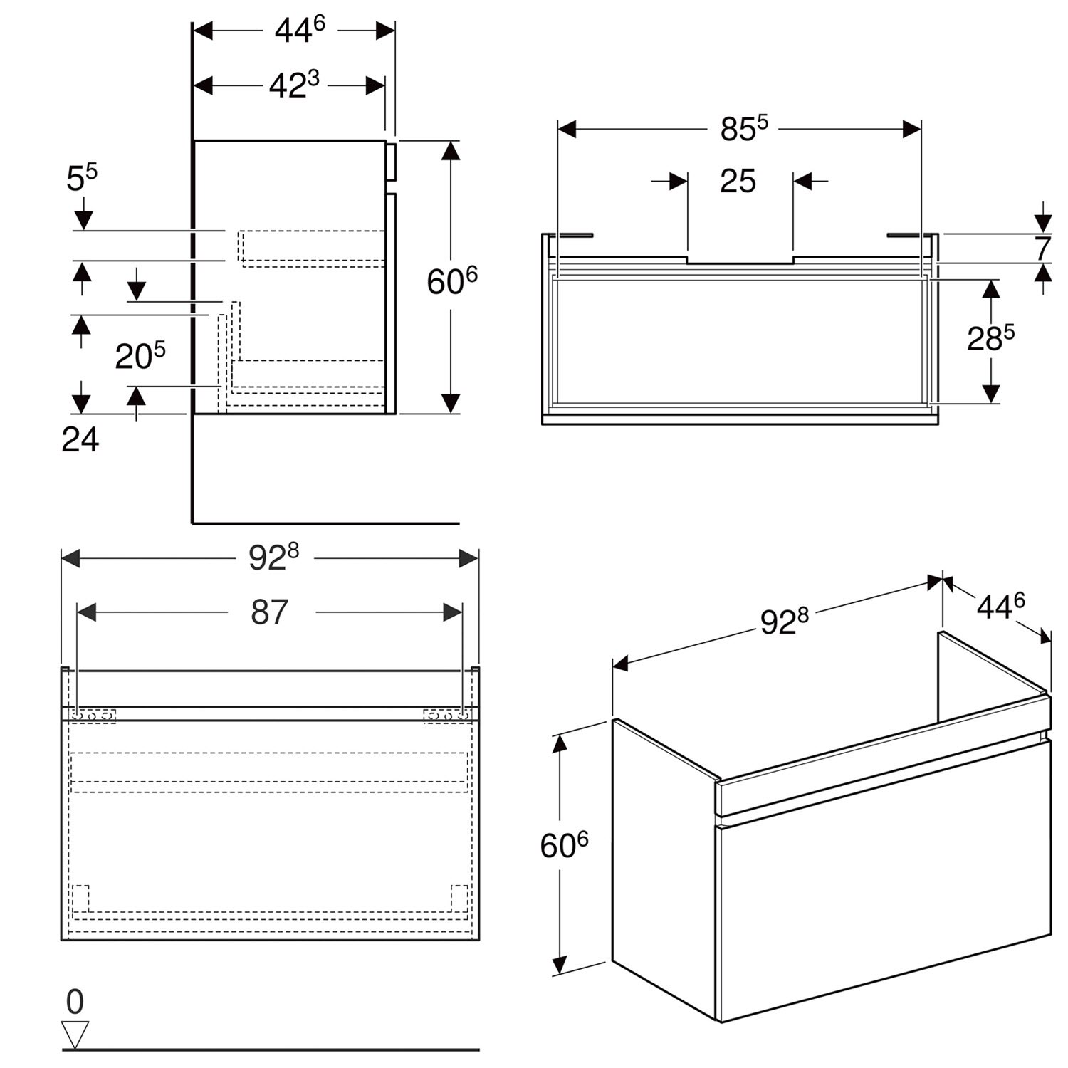 Geberit Renova Plan Unterschrank für Waschtisch 100 cm, mit 1 Schublade und 1 Innenschublade
