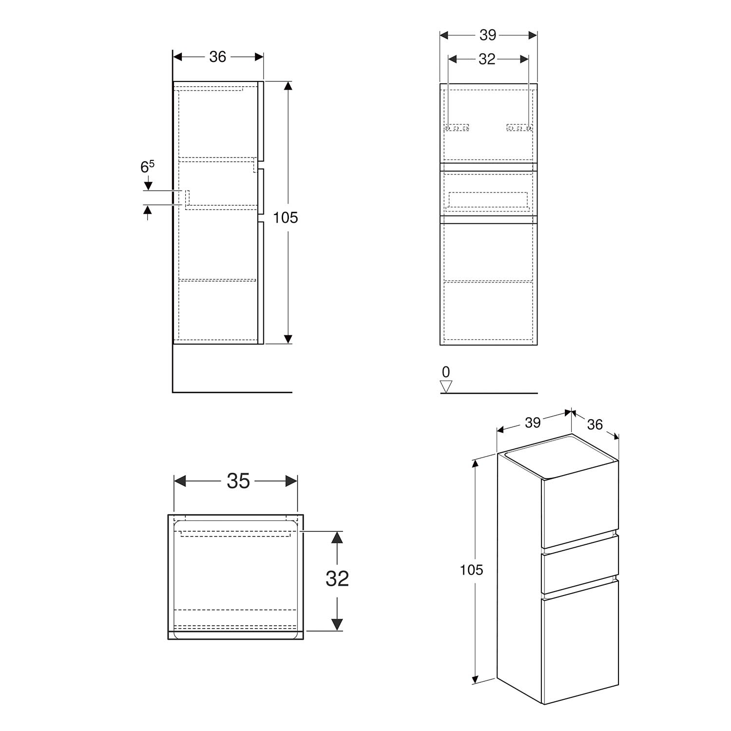 Geberit Renova Plan Mittelhochschrank mit 2 Türen und 1 Schublade