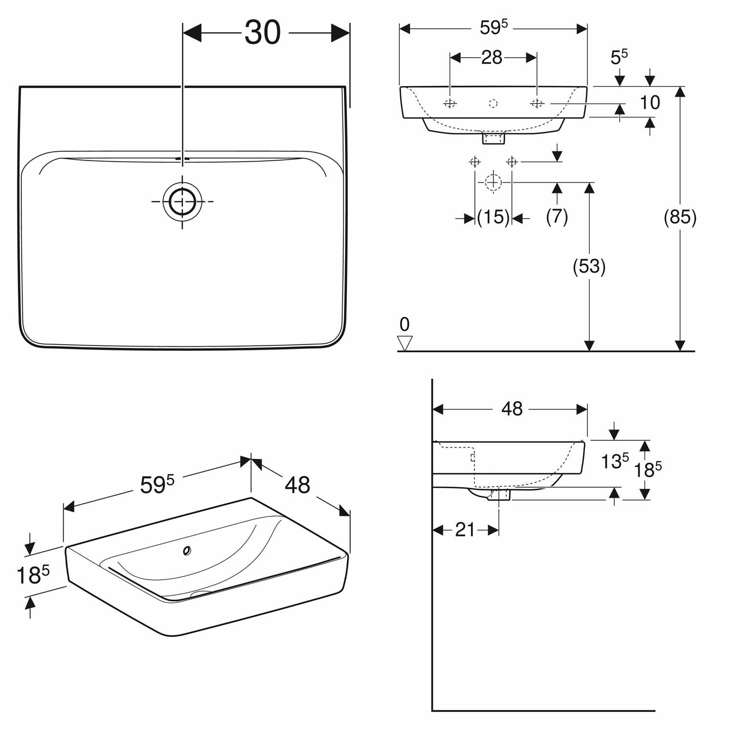 Geberit Renova Plan Waschtisch 60 cm, ohne Hahnloch, mit Überlauf
