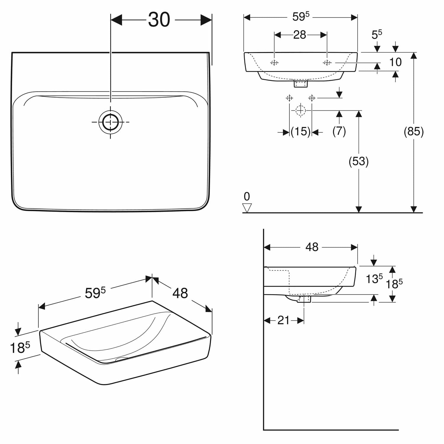 Geberit Renova Plan Waschtisch 60 cm, ohne Hahnloch, ohne Überlauf