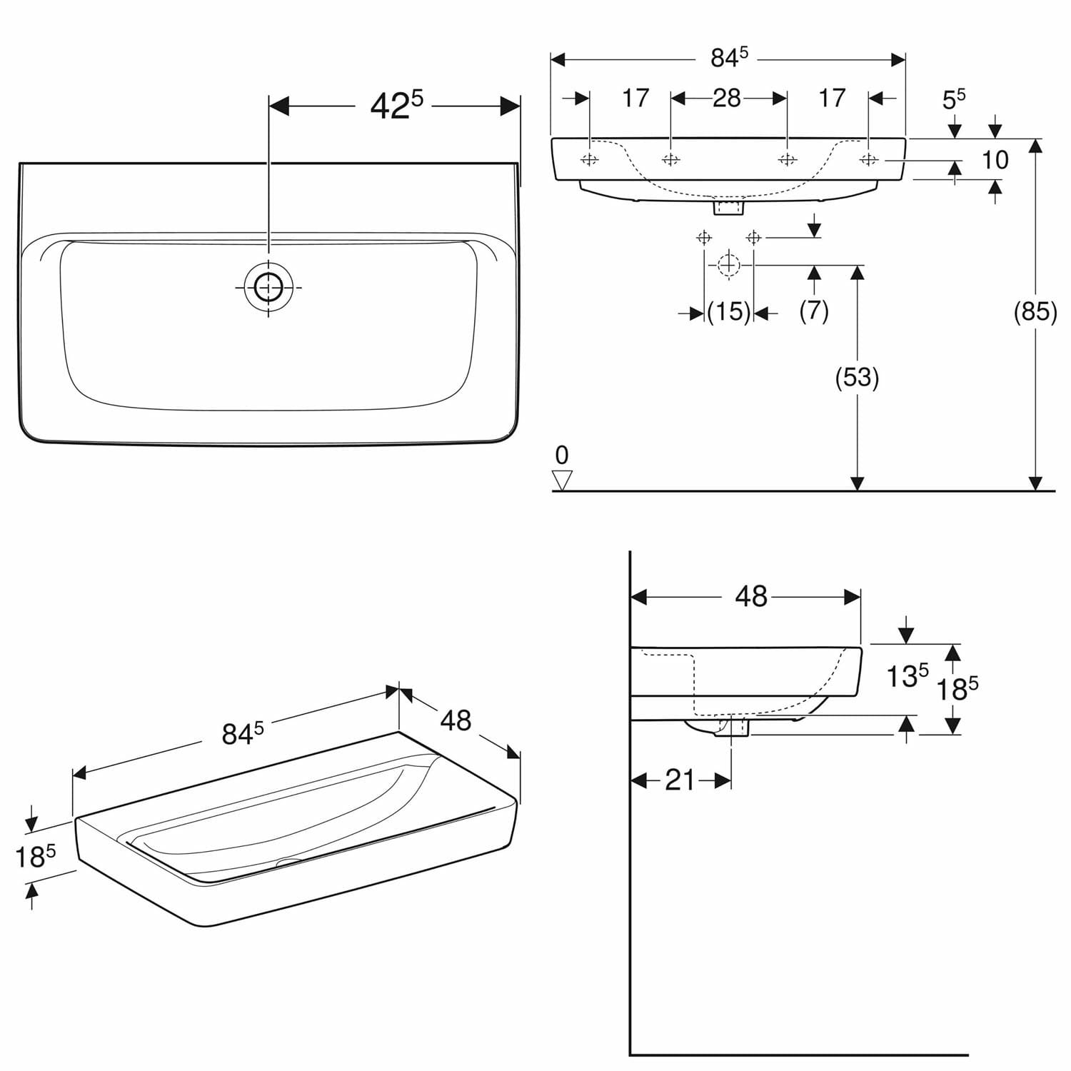 Geberit Renova Plan Waschtisch 85 cm, ohne Hahnloch, ohne Überlauf
