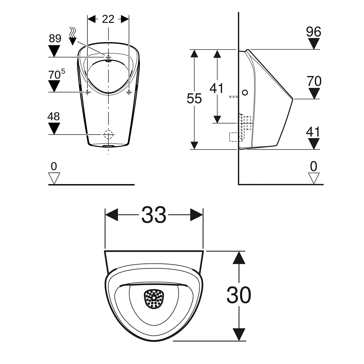 - Lieferumfang: Urinalkeramik, Befestigungsmaterial für Urinal, Ablaufsieb, Spülverteiler