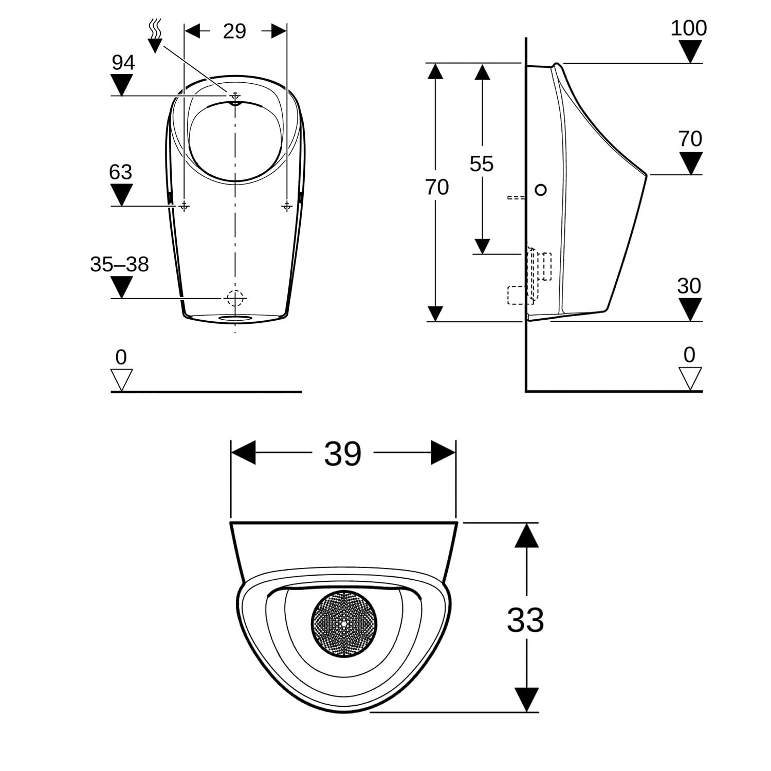 - Lieferumfang: Urinalkeramik, Befestigungsmaterial für Urinal, Ablaufsieb, Spülverteiler, Ablaufgarnitur