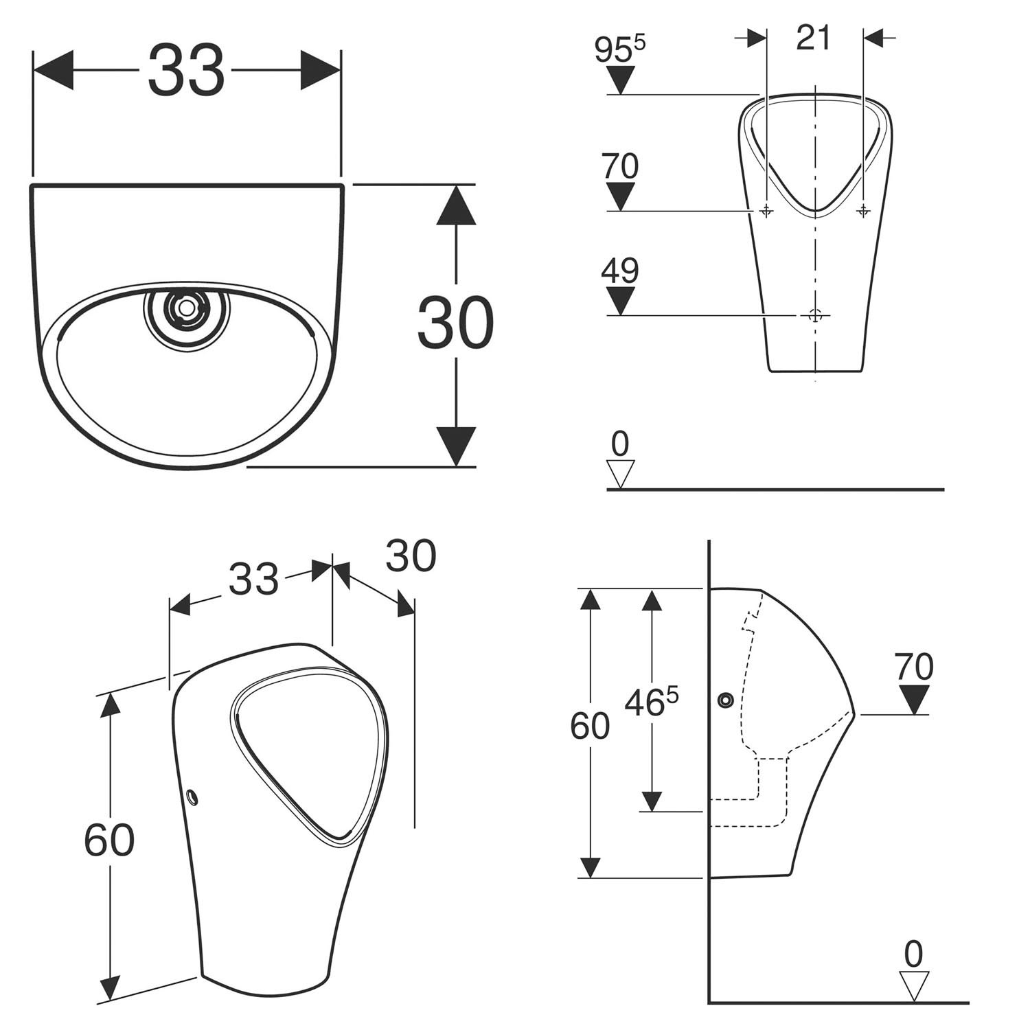 Geberit Urinal Narva, wasserlos, Abgang nach hinten