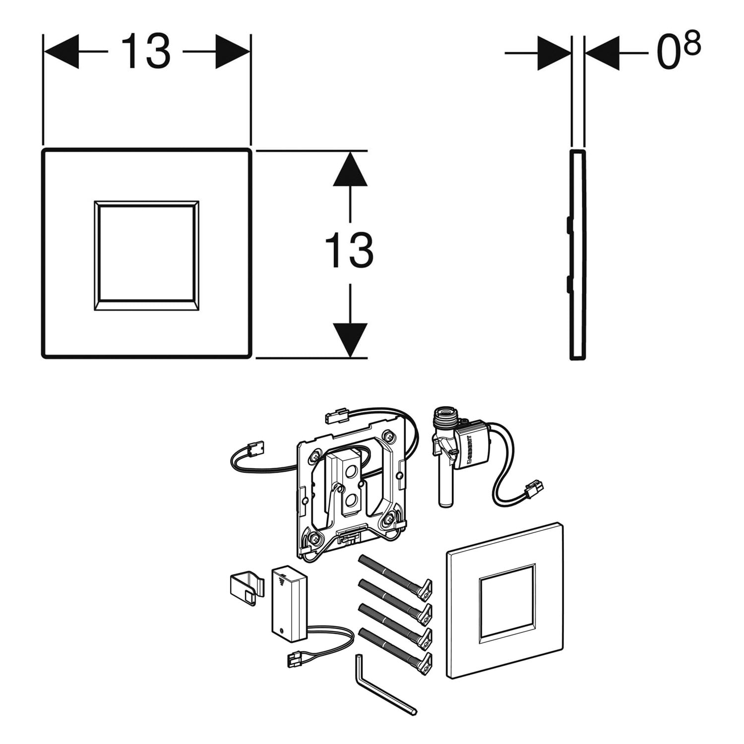 Geberit Urinalsteuerung mit elektronischer Spülauslösung, Batteriebetrieb, Typ 20 square Abdeckplatte