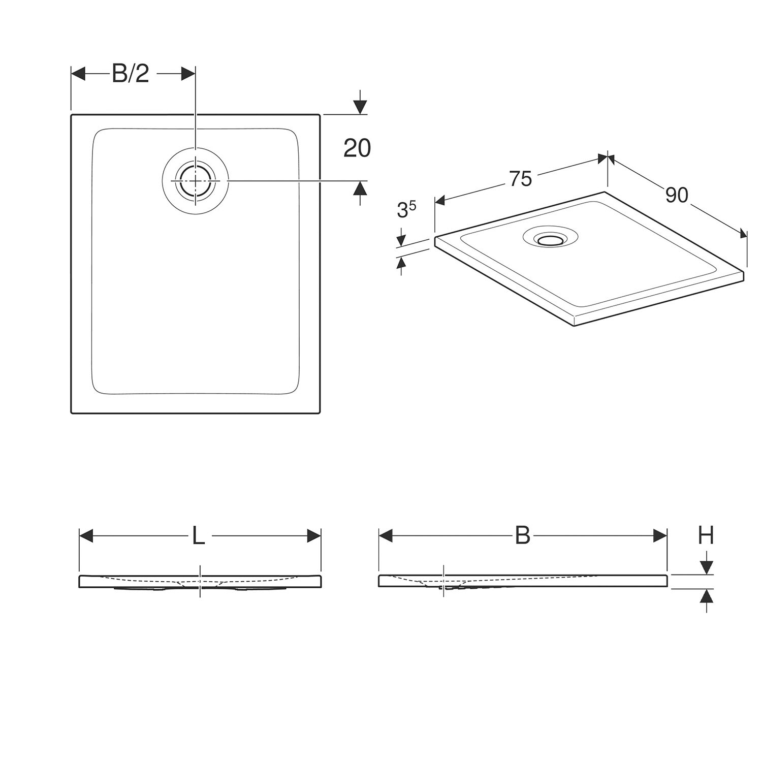 Geberit Nemea Rechteckduschwanne 75 x 90 cm