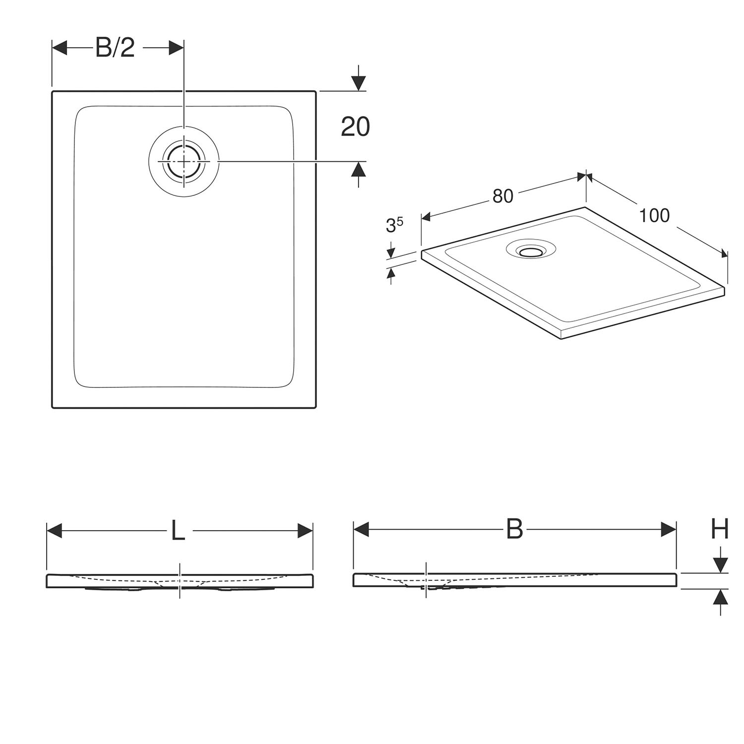 Geberit Nemea Rechteckduschwanne 80 x 100 cm