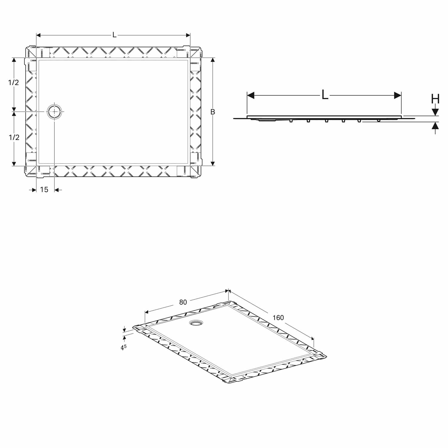 Geberit Setaplano Duschfläche 160 x 80 cm