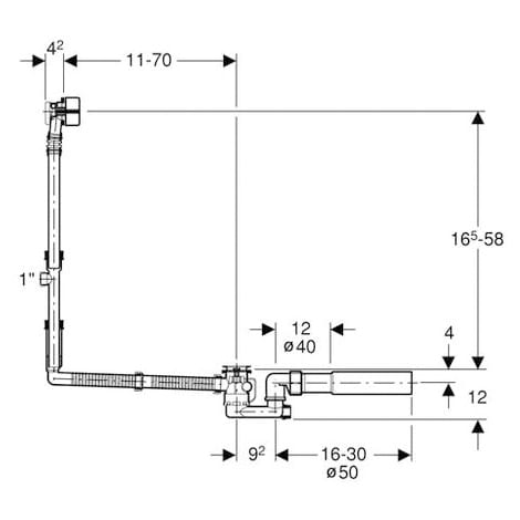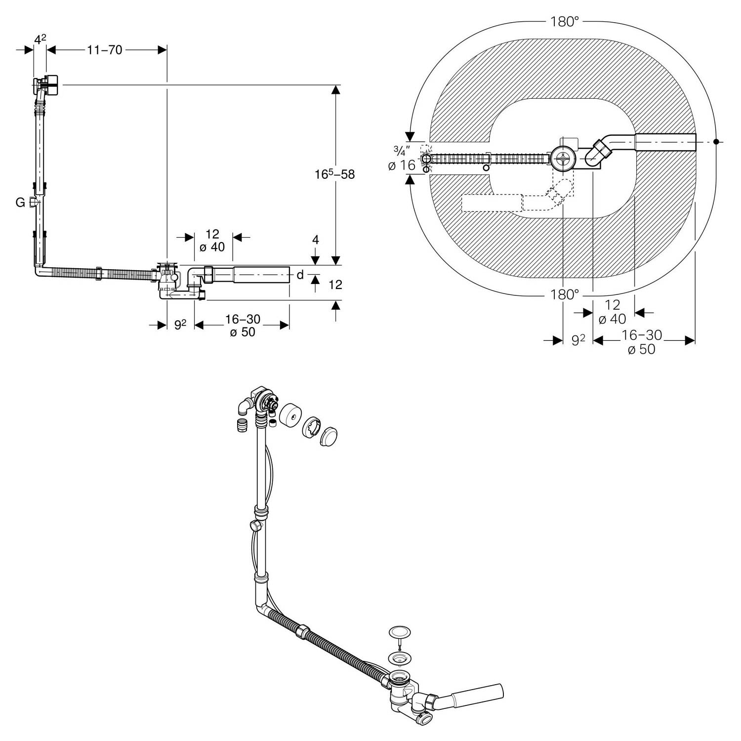 Geberit Badewannen Zu- und Ablauf-Garnitur D52 mit Fertigbauset, für Sonderwanne