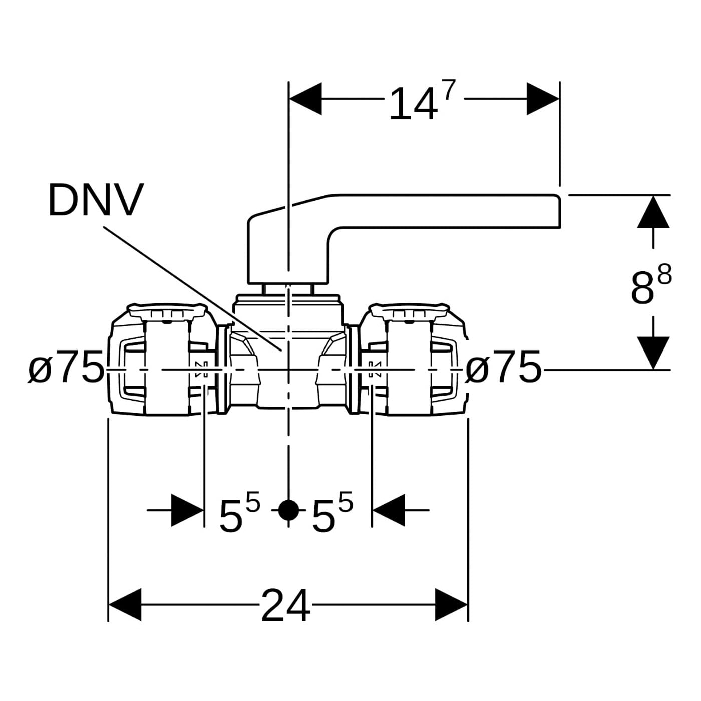 Geberit FlowFit Kugelhahn mit Betätigungshebel Ø 7,5 cm