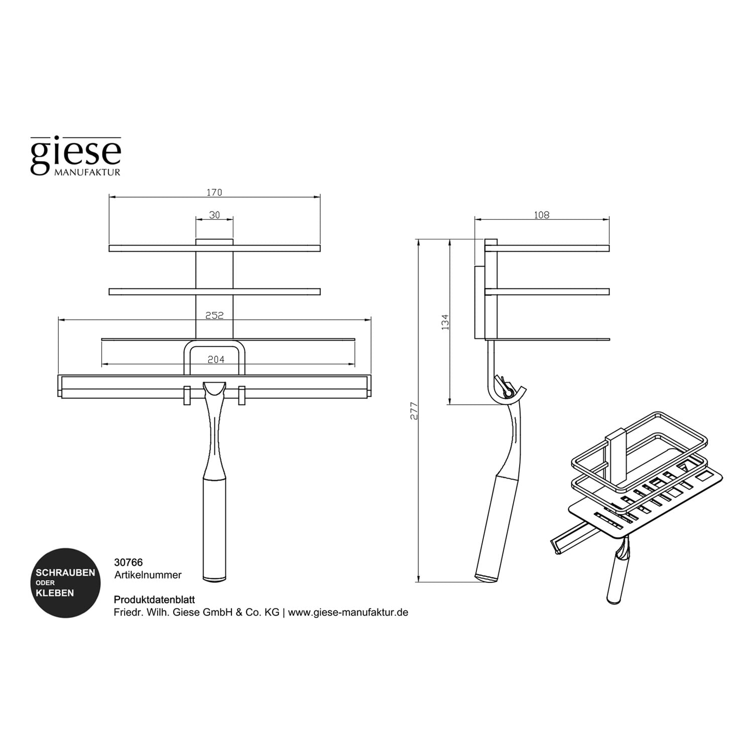 Giese Duschkorb Piano mit Halter für Rasierer und Wischer
