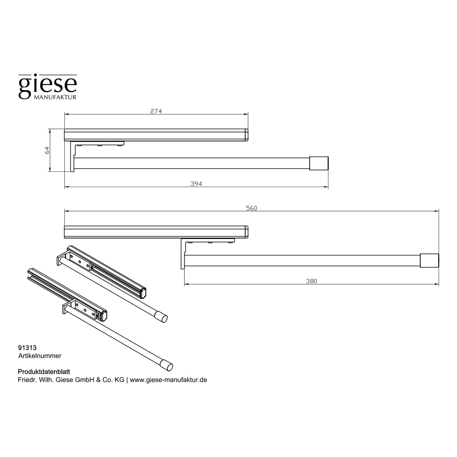 Giese Handtuchhalter 38 cm, ausziehbar