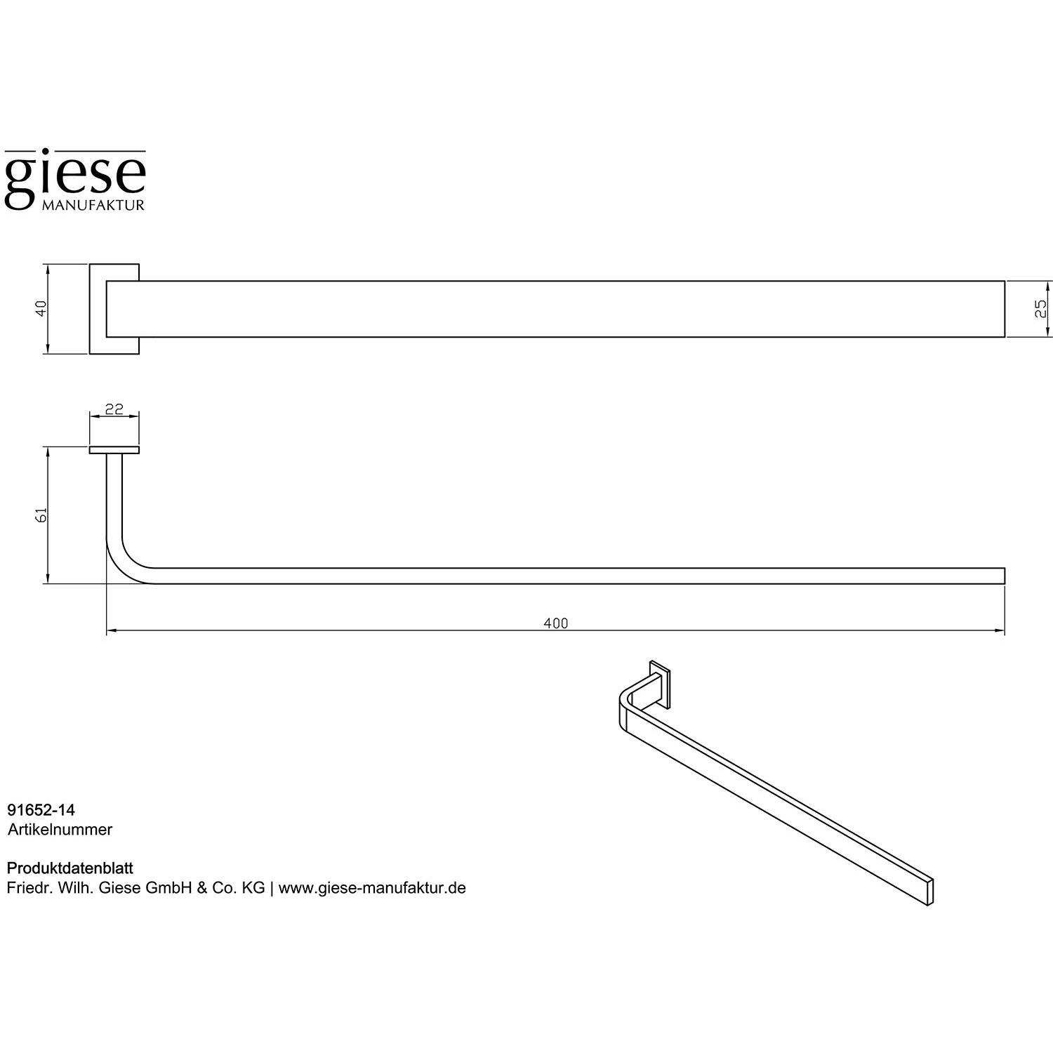 Giese Handtuchhalter 40 cm für Befestigung am Badmöbel