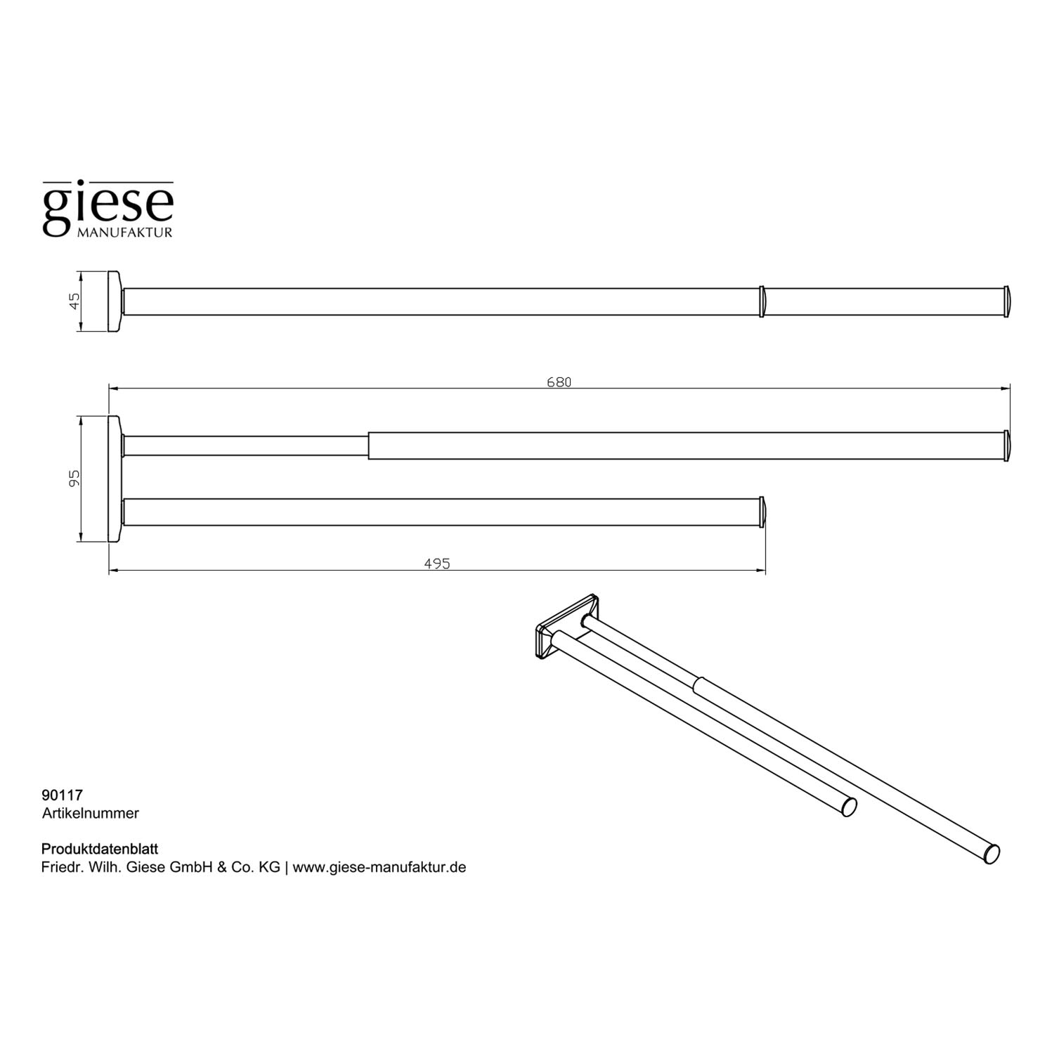 Giese Handtuchhalter doppelt 49,5 cm, ausziehbar