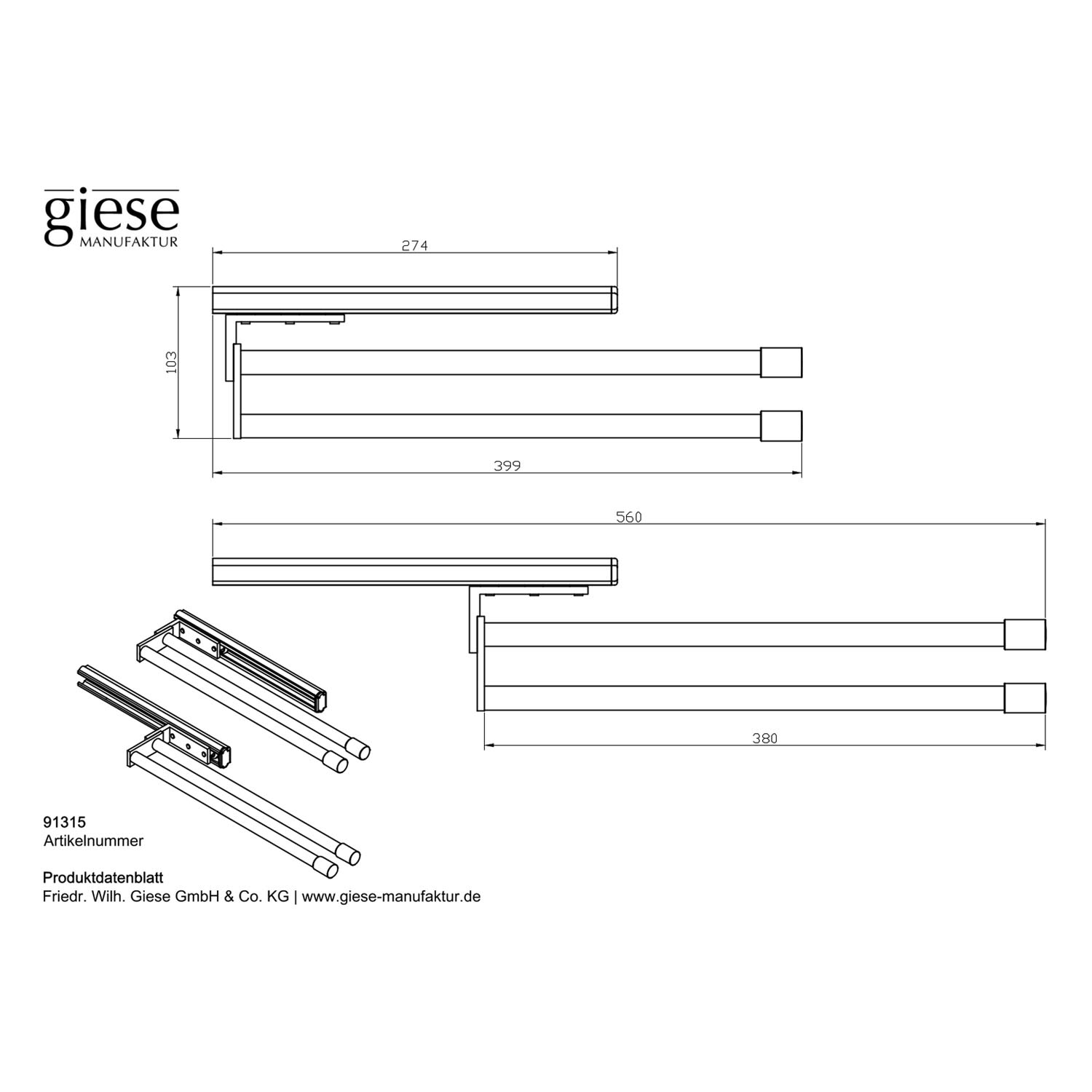 Giese Handtuchhalter doppelt 39,9 cm, ausziehbar